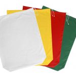 Červený pytel na špinavé prádlo se zavíráním na stahovací šňůrku. Materiál: 65% polyester / 35% bavlna. Rozměr: 73 x 110cm.