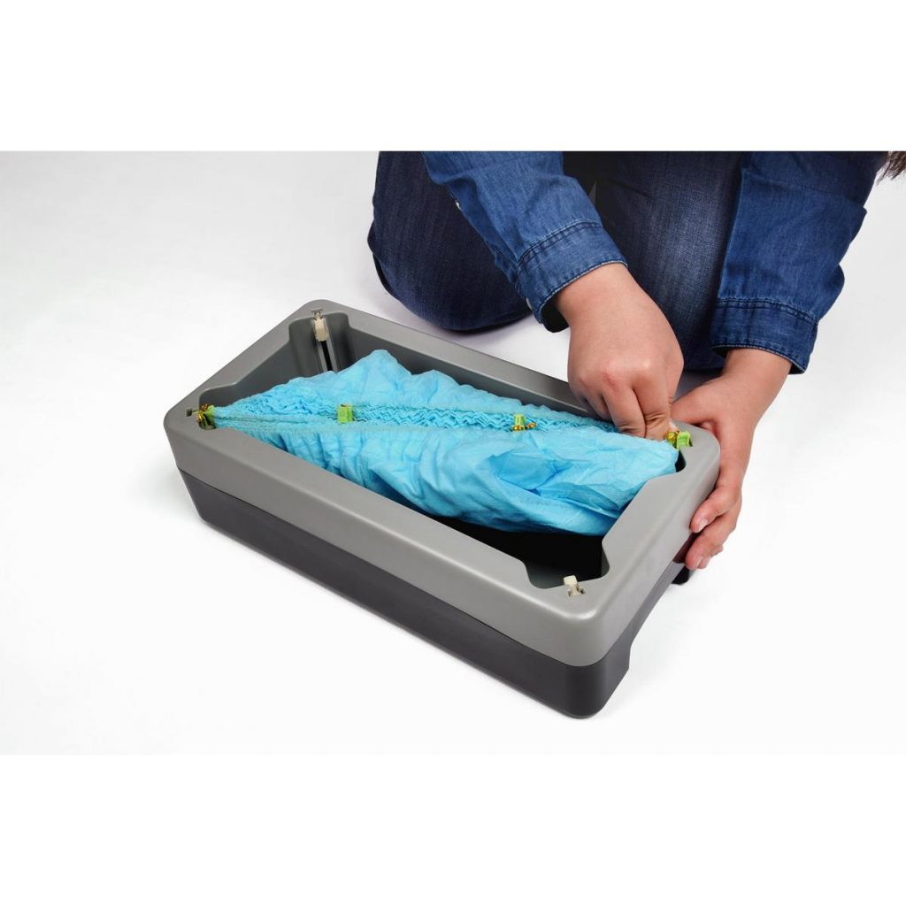 - Rychlé a hygienické použití – bez nutnosti ohýbání, kontaktu s návleky nebo obuví.