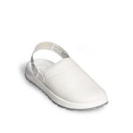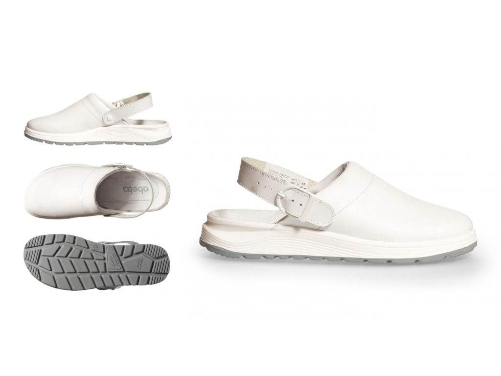 Abeba 87021 je ideální pracovní obuv pro kuchyňské a potravinářské provozy, s plnou špičkou dobře chránící prsty, s překlopným a délkově nastavitelným páskem, s antibakteriální úpravou sanitized, svršek obuvi z hladké usně, podešev je protiskluzová a odolná proti olejům i živočišným tukům s certifikací SRC.