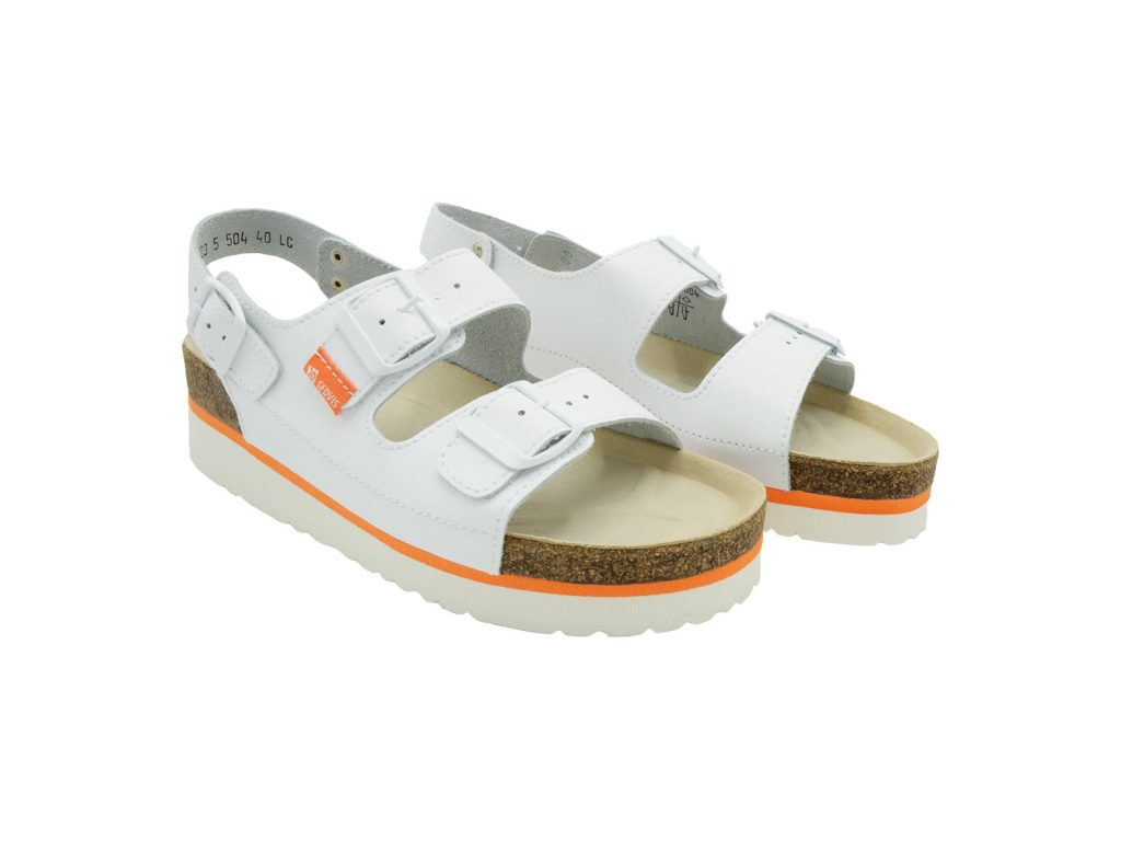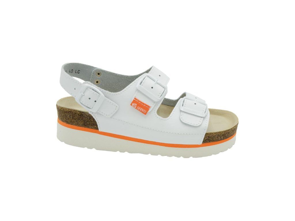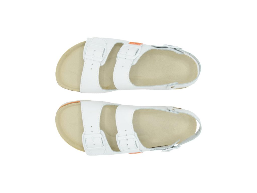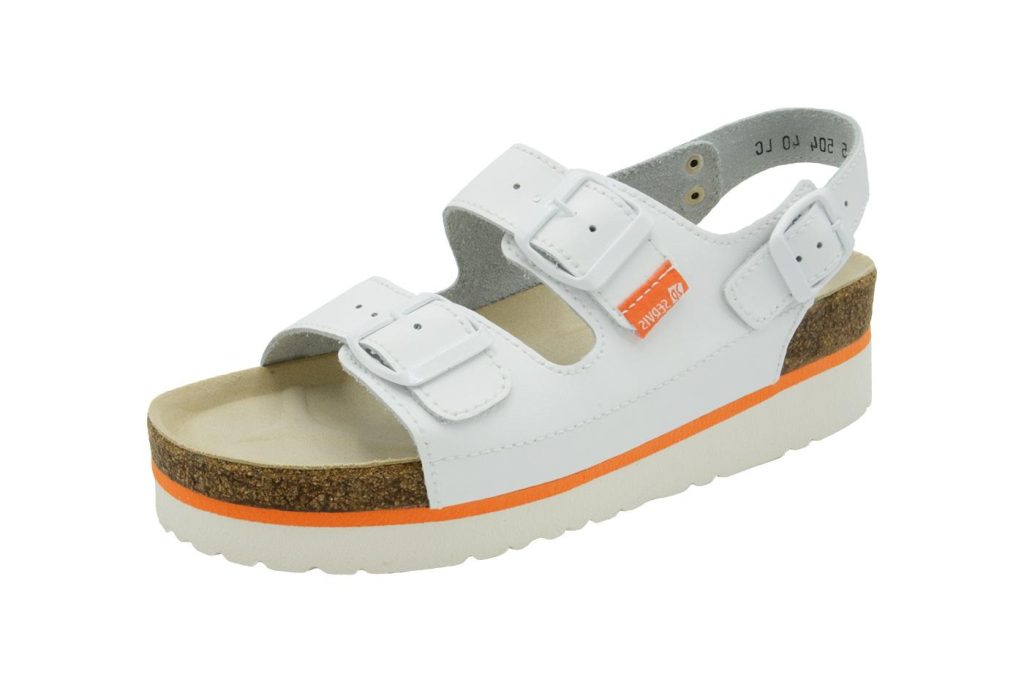 Zdravotnická pracovní obuv dámská S3K Orange jsou korkové pantofle se 2 nastavitelnými a koženými pásky přes nárt a 1 taktéž nastavitelným patním páskem. Ergonomická stélka splňuje požadavky na zdravotní obuv. Jelikož splňuje požadavky normy EN 347 je vhodná, jako pracovní obuv.