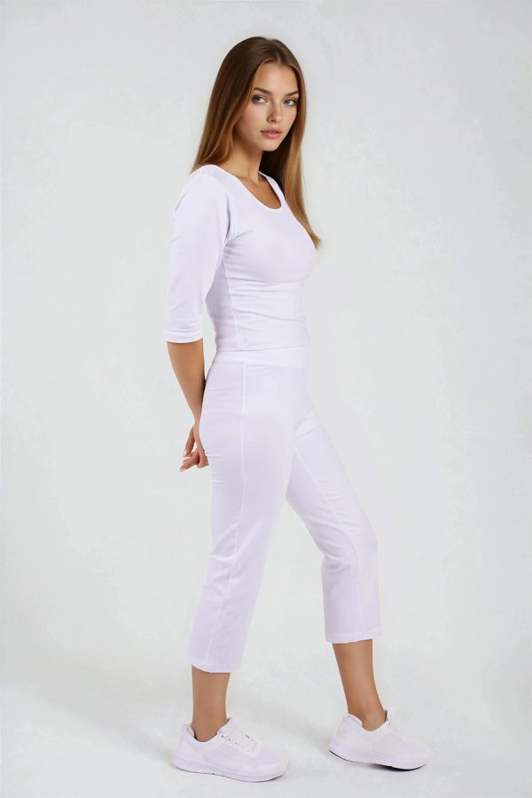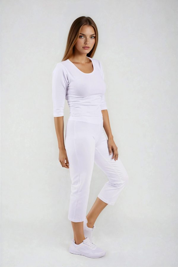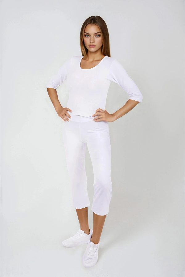 3/4 elastické kalhoty Brazil z velmi příjemného a zdravotně nezávadného materiálu, s vypasovaným střihem v bílé barvě.- velmi příjemný a zdravotně nezávadný materiál