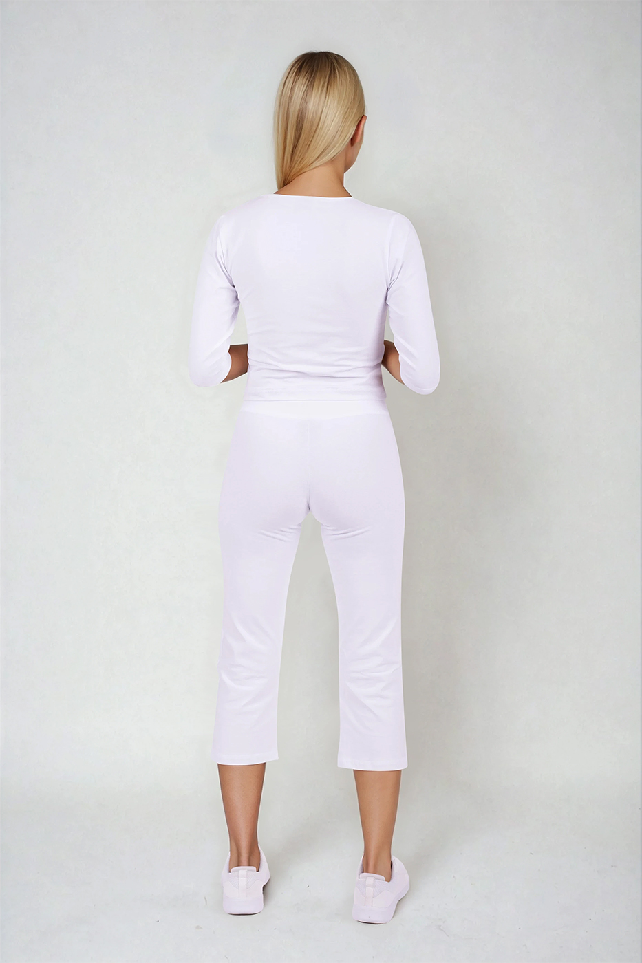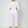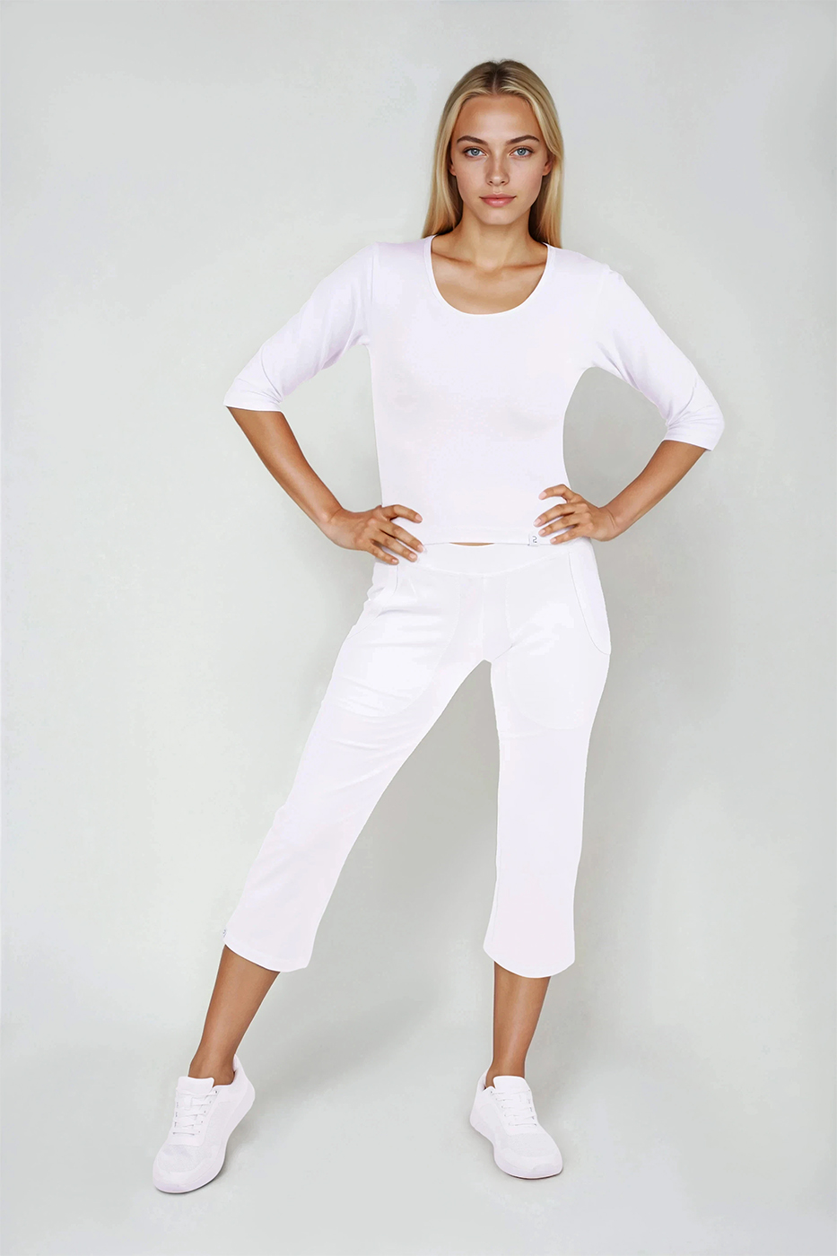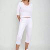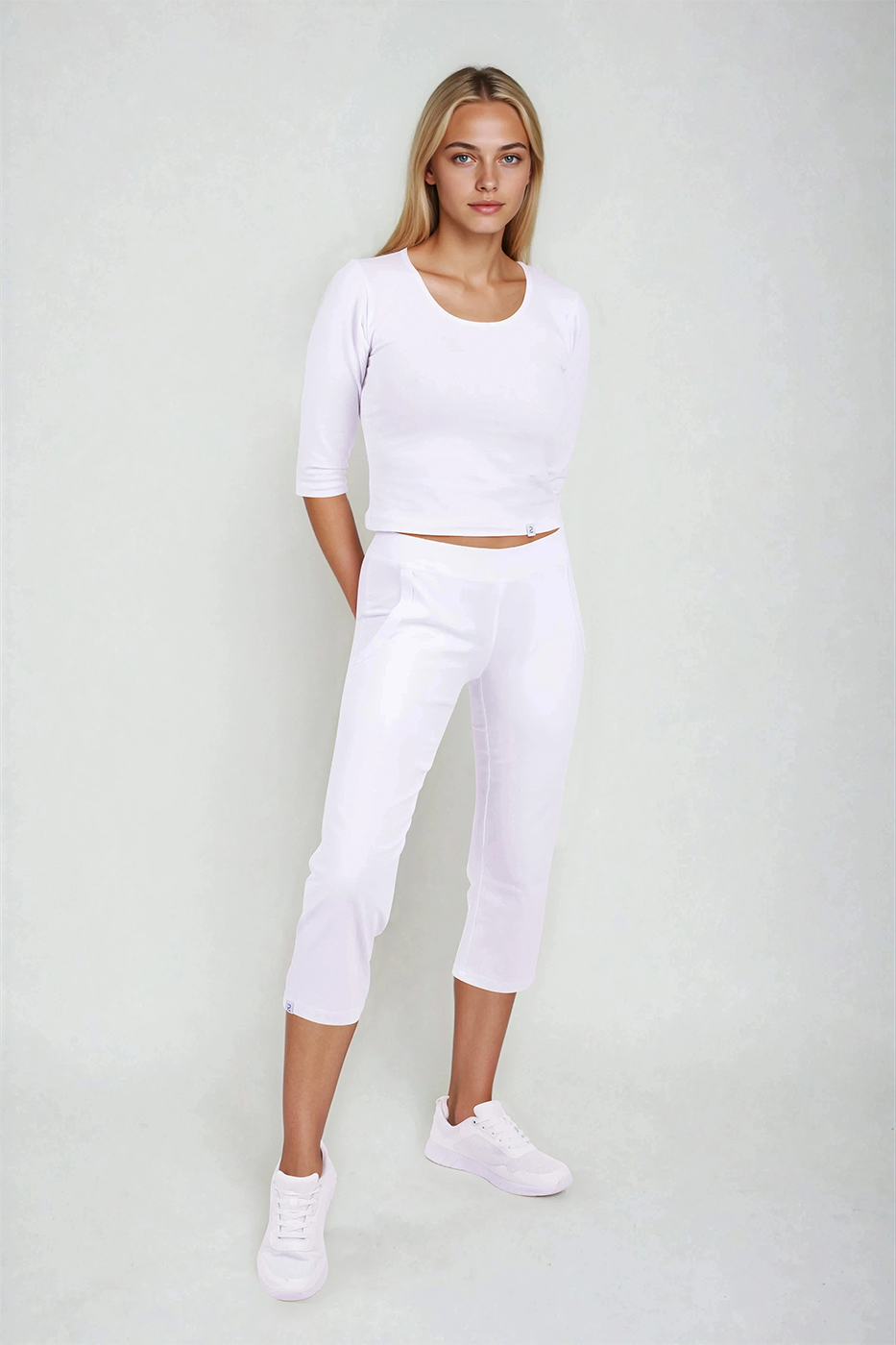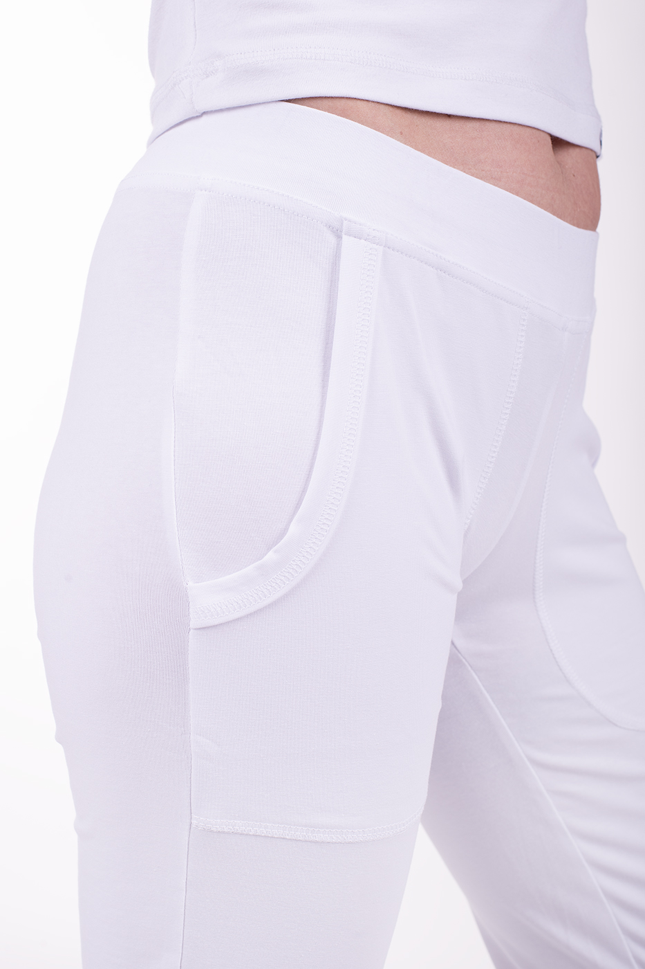 3/4 elastické kalhoty Brazil bílé dámské s nakládanými kapsami, vypasované, z velmi příjemného a zdravotně nezávadného směsového materiálu.- velmi příjemný a zdravotně nezávadný materiál
