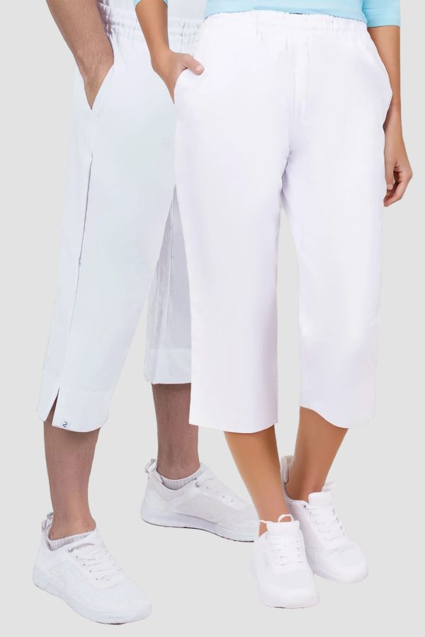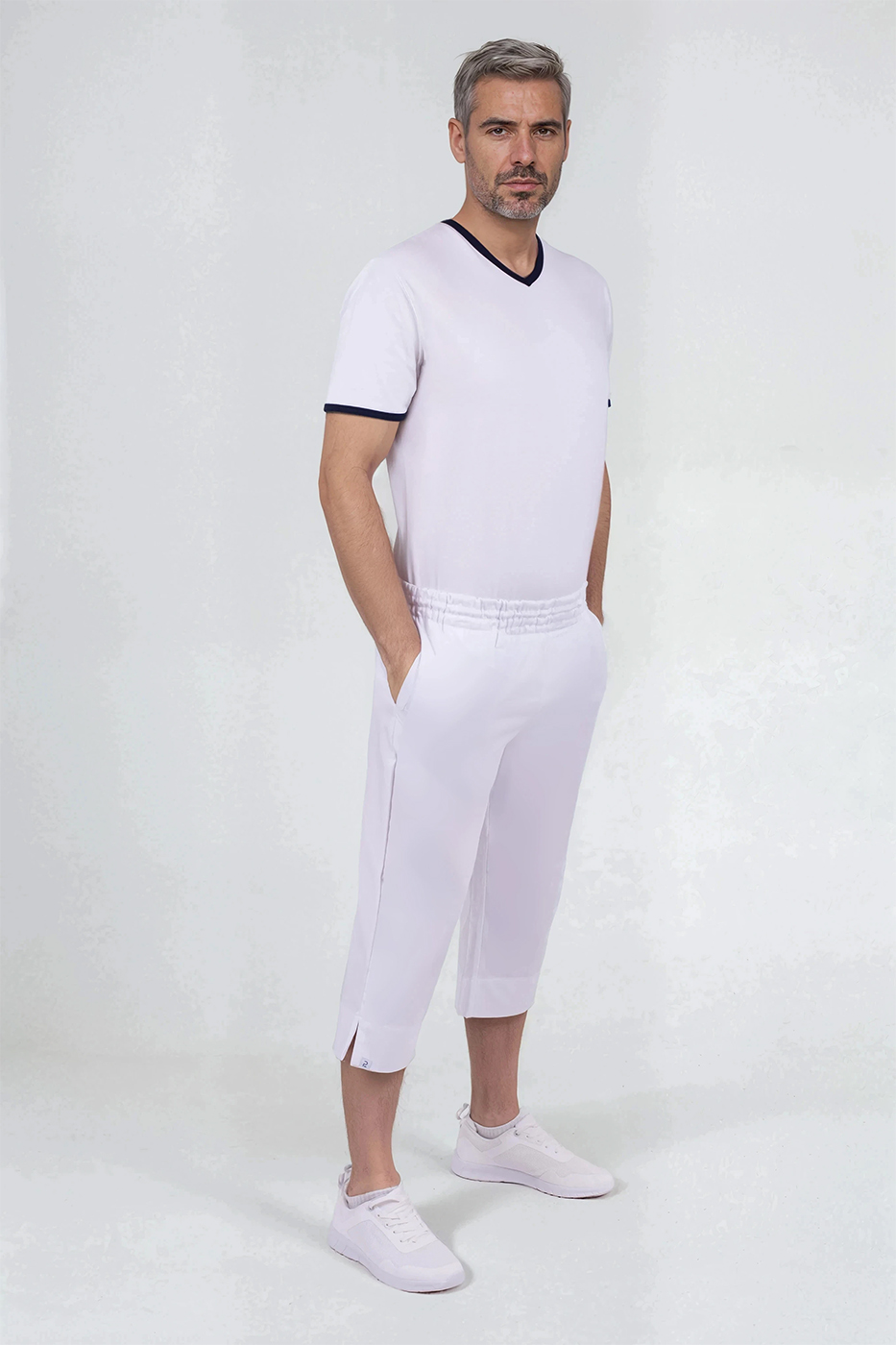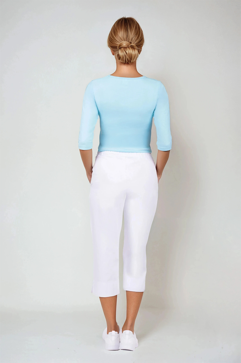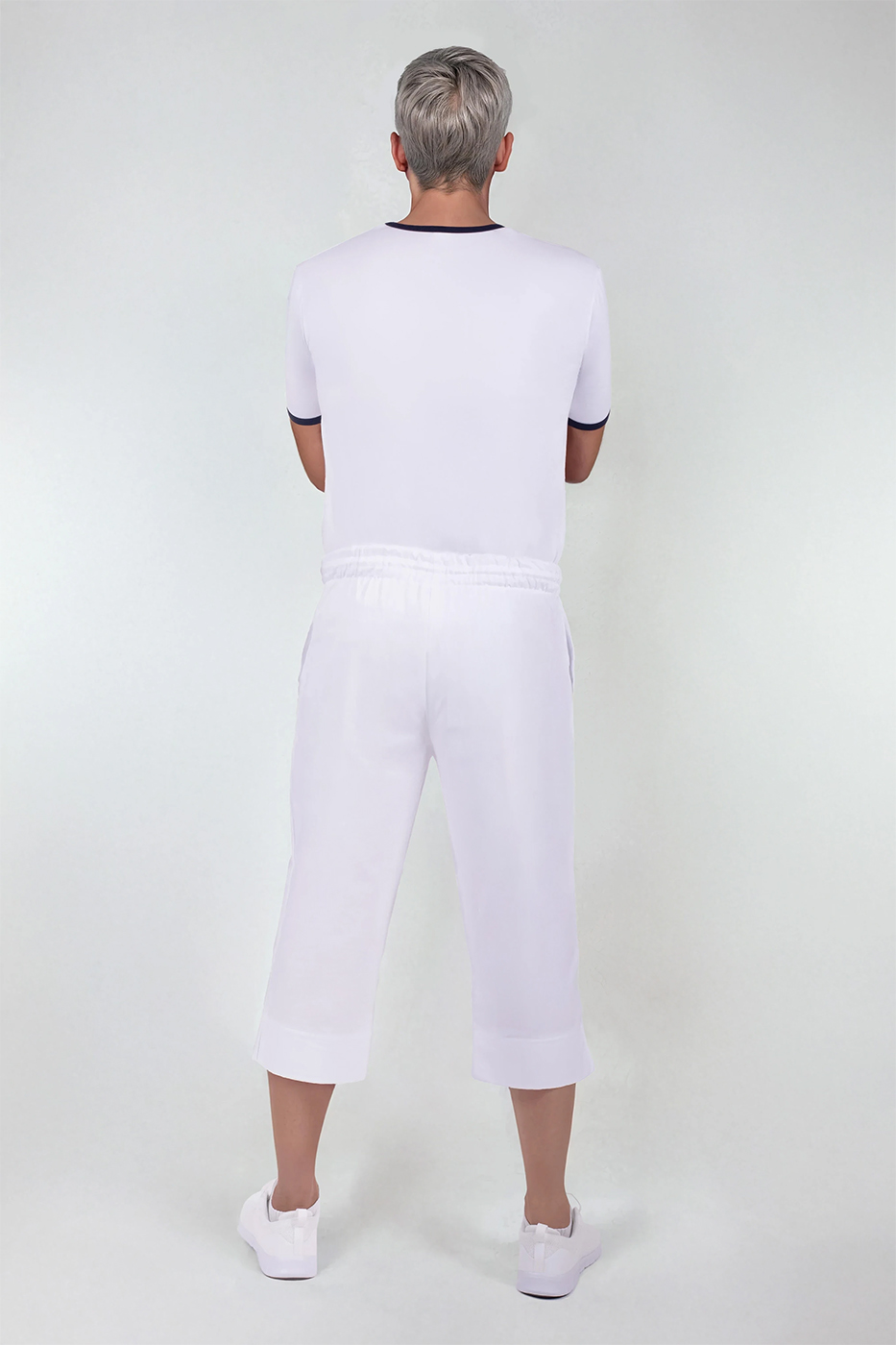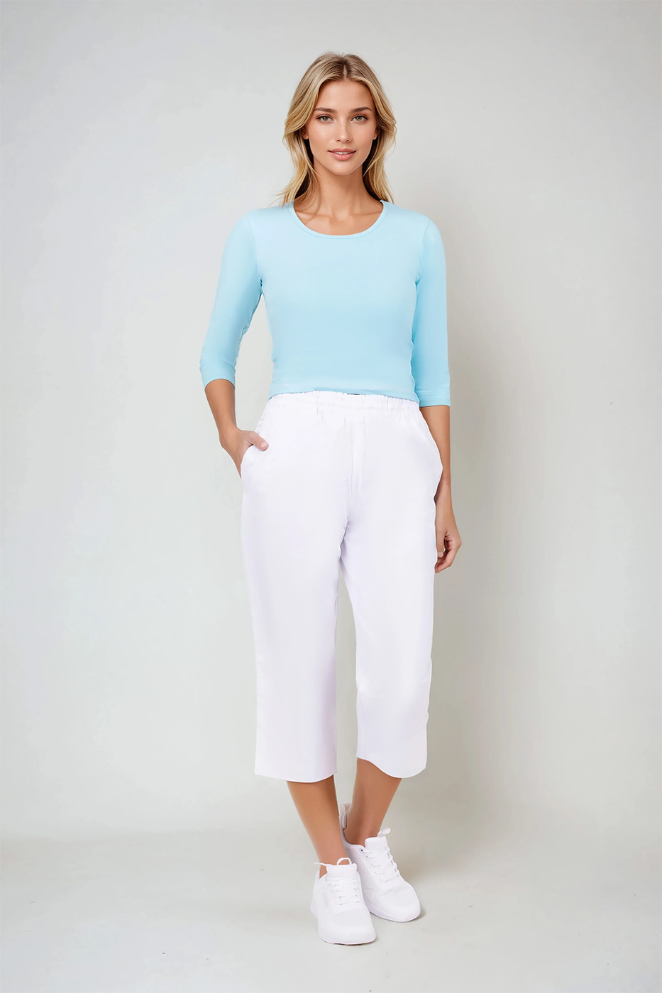 3/4 kalhoty Uni Capri mají v pase 2 vyměnitelné gumy a 1 stahovací šňůrku, 2 švové kapsy a boční rozparky na koncích nohavic.- tvarově stálý a méně mačkavý materiál