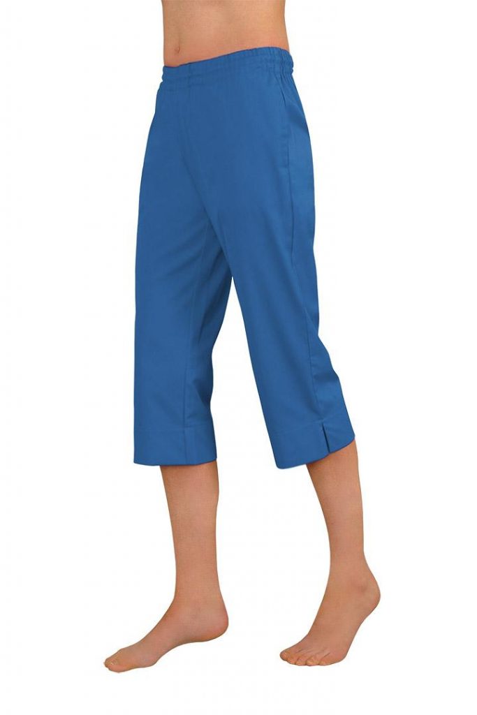 3/4 kalhoty dámské Haiti Capri mají snížený pas, boční rozparky na nohavicích, 2 švové kapsy. V pase mají 2 vyměnitelné gumy a 1 šňůrku. Materiál: 100% bavlna, sanfor., merc. 165g/m2. Praní: na 60°C.- 100% bavlna, příjemná a přátelská k pokožce
