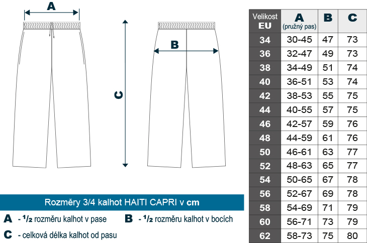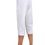 3/4 kalhoty dámské bílé Haiti Capri se sníženým pasem, ve kterém jsou 2 vyměnitelné gumy a 1 šňůrka, na nohavicích krátký boční rozparek, 2 švové kapsy.