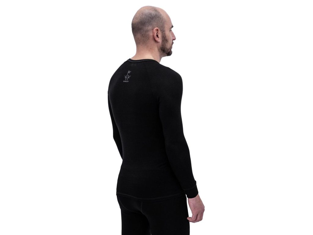 Bambusové tričko pánské Bambusky s dlouhými rukávy v černé barvě vyrábíme z jemného přírodního materiálu bambusové viskózy, které se přezdívá chytré vlákno. Bambusové oděvy jsou hebky měkké, prodyšné a k pokožce velmi příjemné. Bambusové oblečení má navíc antibakteriální vlastnosti díky tomu, že jsou bambusová vlákna přirozeně rezistentní proti plísním i bakteriím. Bambusové oblečení má navíc termoregulační schopnost, v létě chladí a v zimě hřeje. V bambusovém oblečení příjemně voníte celý den – bambusová vlákna obsahují přírodní složky, které nedovolí průniku a následnému usazování potu či jiným nepříjemným pachům ve struktuře tkaniny.