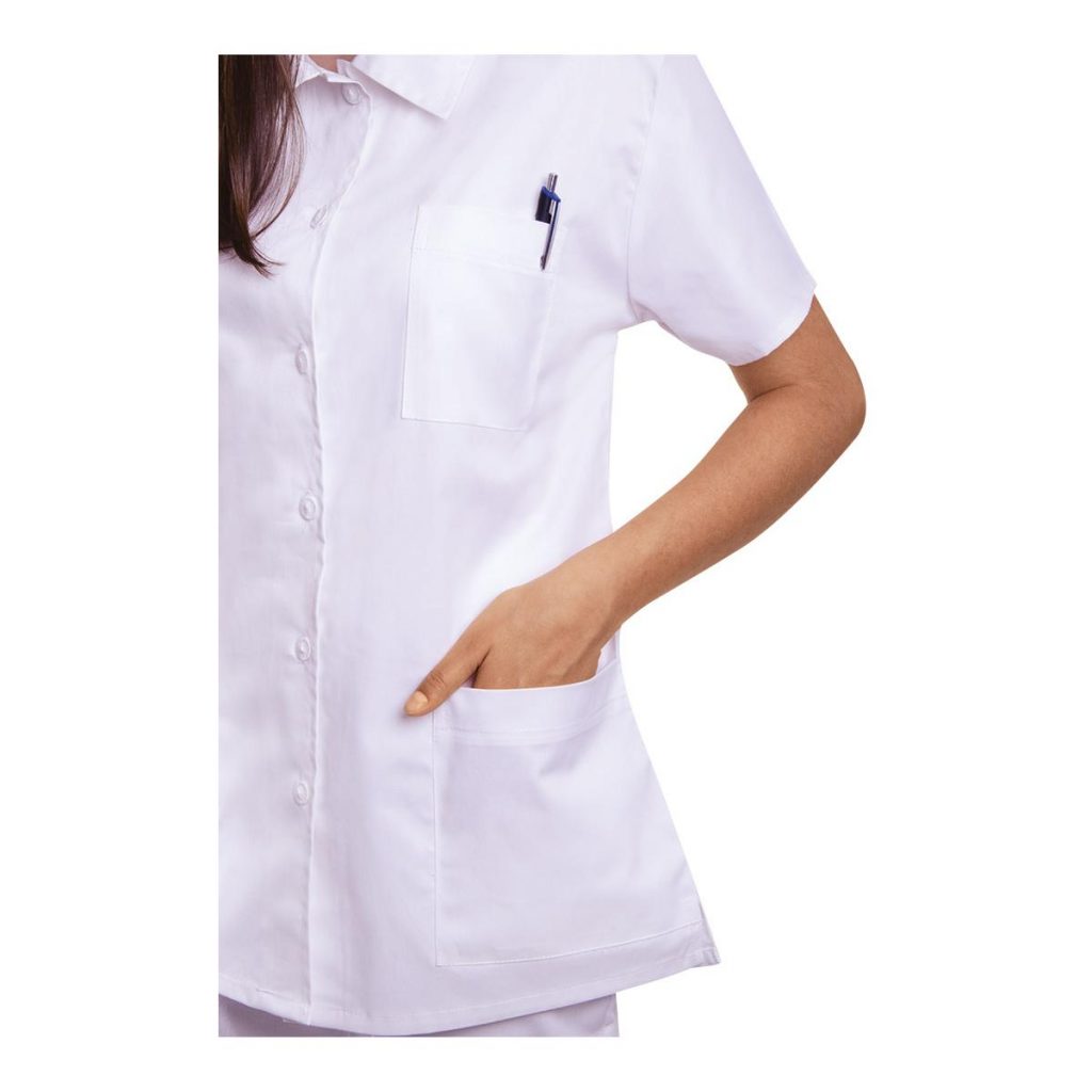 Díky své zářivě bílé barvě je navíc košile vhodná do profesních prostředí, kde je kladen důraz na čistotu a reprezentativnost – například v kancelářích, zdravotnických zařízeních nebo pohostinství.
