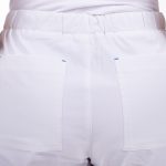 Bílé strečovékalhoty dámské Holly klasického střihu, kontrastní potisk na vnitřní straně pasu, 8 kapes – 2 přední + 2 zadní + 4 postranní kapsy, rozparek na nohavicích, středně vysoký a pružný pas, nastavitelná šňůrka všitím zajištěná proti uvolnění, dvojitá našitá kapsa s potištěným knoflíkem, rovné nohavice, prodyšné vlhkost odvádějící vlákno udržující sucho a chladivý pocit, nohavice lze rozepnout v délce 22cm. Materiál: 95% polyester + 5% spandex. Praní: na 30°C.