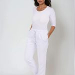 Bílé zdravotnické kalhoty na gumu Goma – Univerzální střih a pohodlné nošení