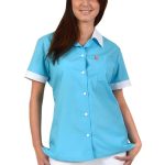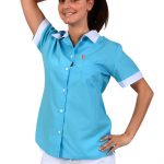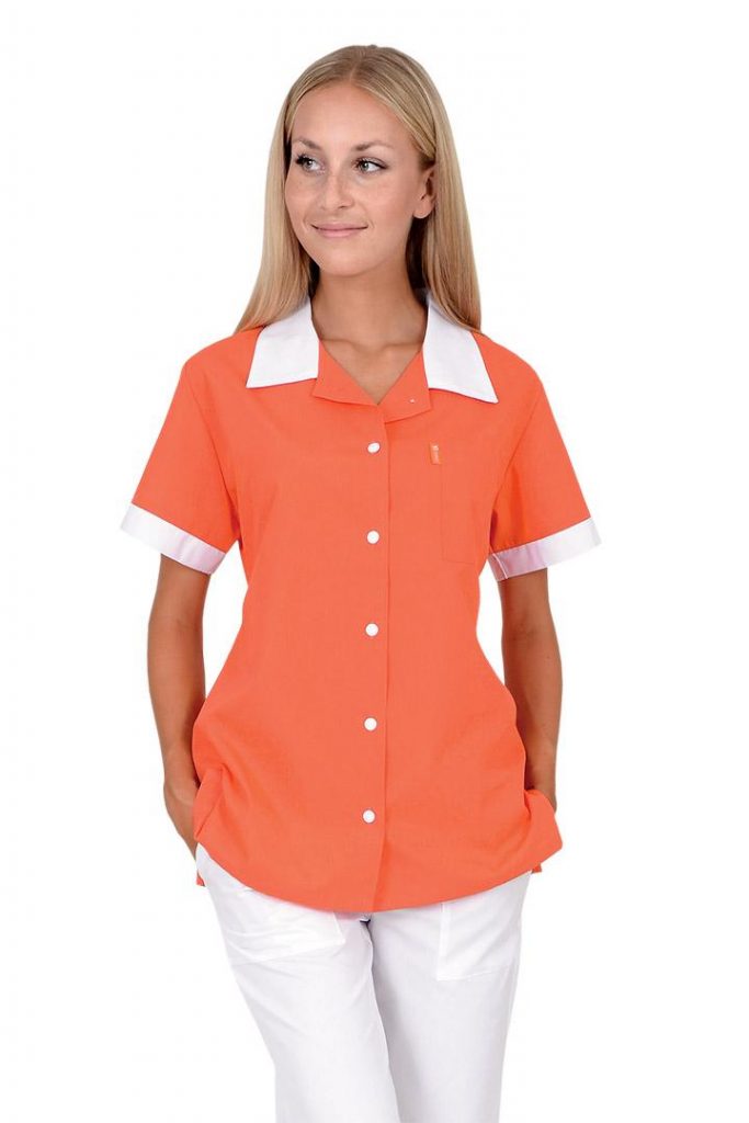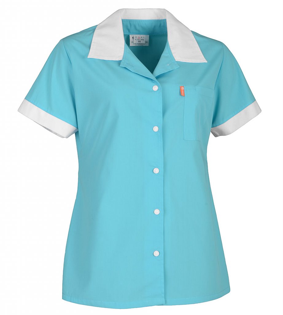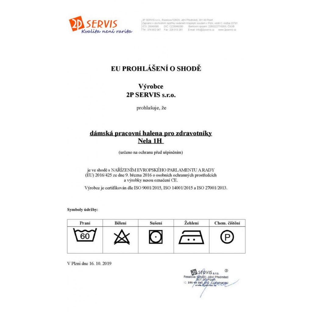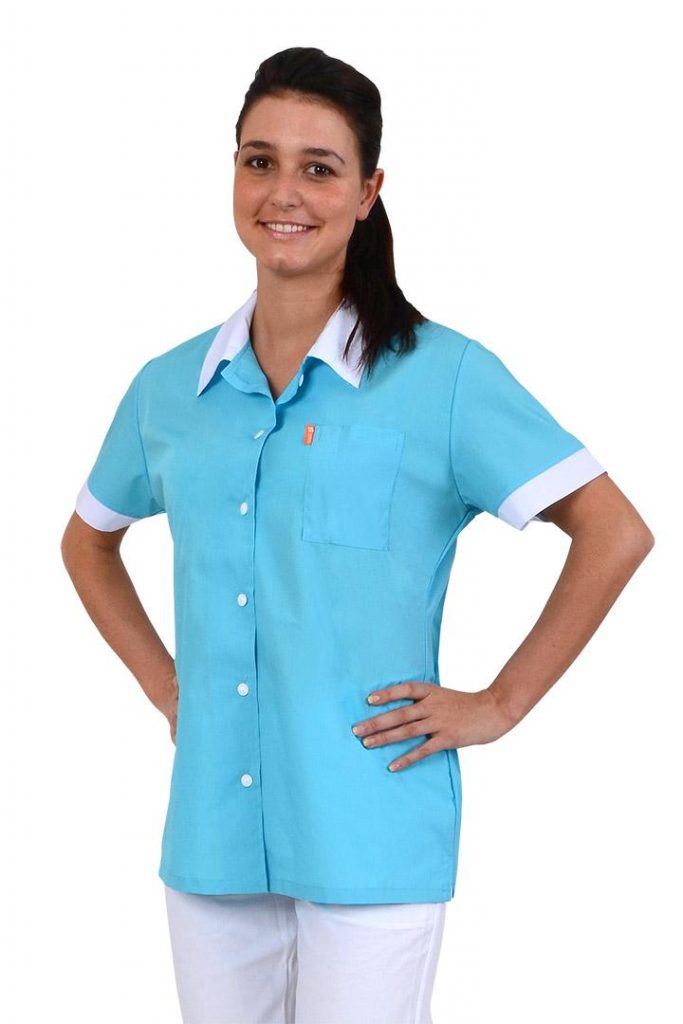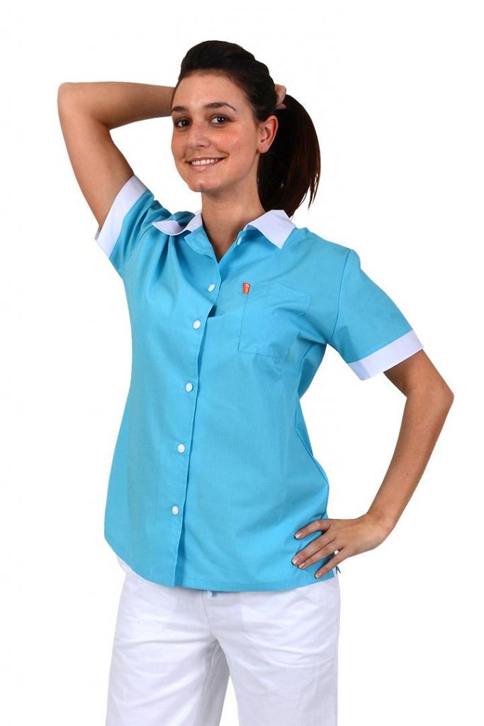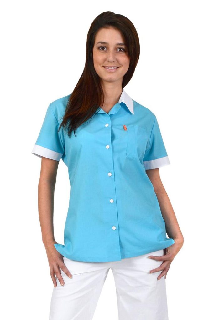 Dámská pracovní halena pro zdravotníky Nela 1H s mírně vypasovaným střihem a celopropínacím zapínáním na knoflíky, náprsní kapsičkou a v bočním švu krátkými rozparky. Nový druh velmi lehkého, jemně tkaného a nemačkavého materiálu. Materiál: 60% bavlna, 40% PES, 120g/m2. Praní: na 60°C.