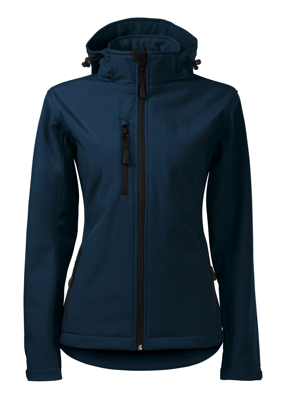 Dámská softshellová bunda námořní modrá má odnímatelnou kupuci, celopropínací zip s krytkou brady, lemy rukávů lze nastavit suchým zipem, dolní lem bundy stáhnete elastickou šňůrkou, vnitřní strana zateplena fleece s antipilingovou úpravou. Materiál: 94% polyester, 6% elastan 300g/m2 – 3vrstvý softshell. Prodyšná membrána: 100% polyester – micro fleece. Voděodolnost: 14000mm. Prodyšnost: 2000g/m2/24h. Praní: na 30°C.