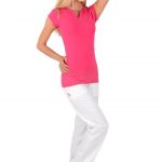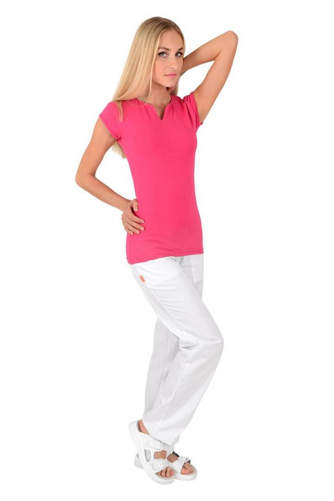Dámská trička s krátkým rukávem Lara v atraktivní jahodové barvě mají lehce vypasovaný střih s extra krátkými rukávy a moderním výstřihem vyrábíme z jemného a zdravotně nezávadného materiálu s obsahem elastanu.