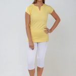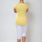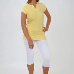 Dámské tričko Lara žlutá s lehce vypasovaným střihem, extra krátkými rukávy a moderním výstřihem vyrábíme z příjemného, zdravotně nezávadného materiálem s příměsí elastanu.