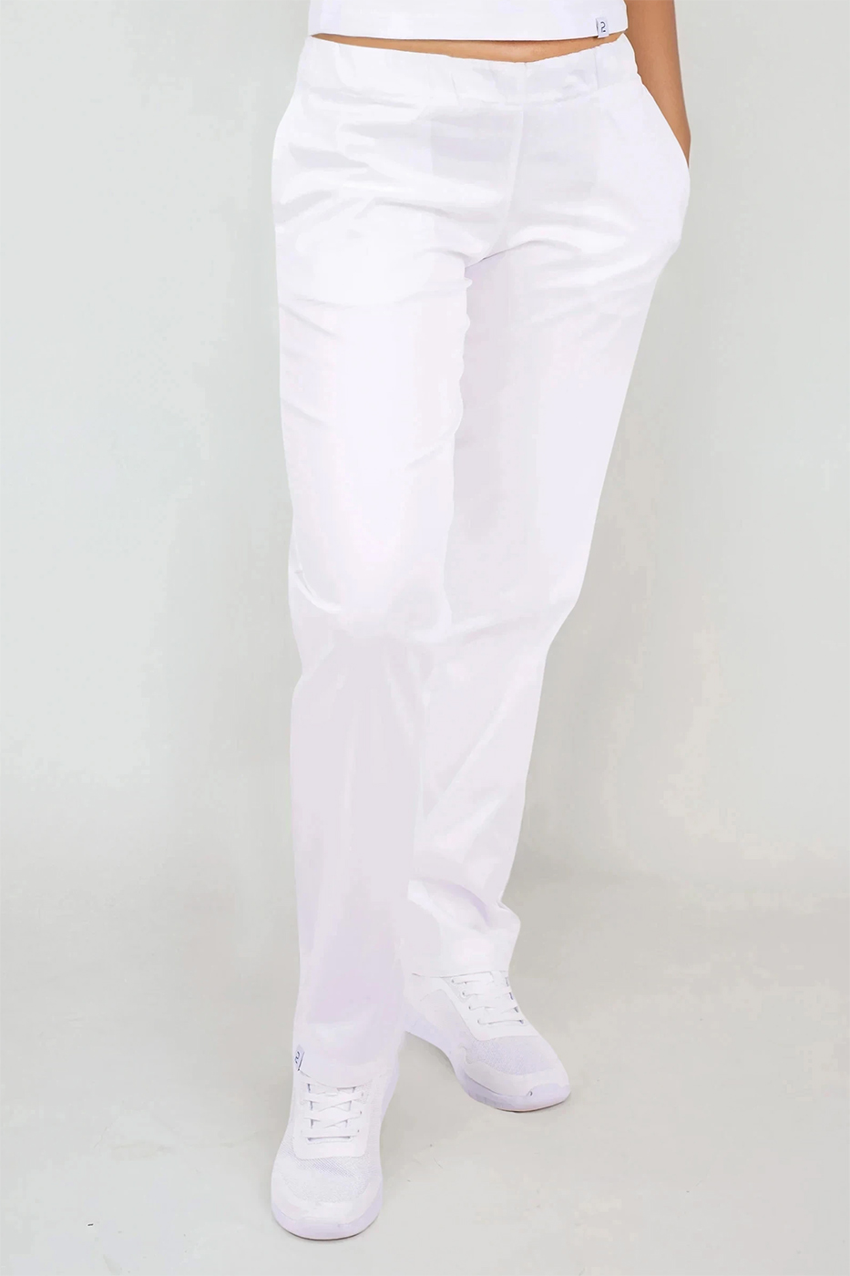 Dámské kalhoty do gumy Royal Satin jsou ideální nejen do nemocničního nebo laboratorního prostředí, ale i do kanceláře, lékárny, kosmetického salonu nebo na běžné nošení. Bílá barva působí profesionálně, upraveně a čistě – ideální tam, kde je hygiena prioritou.