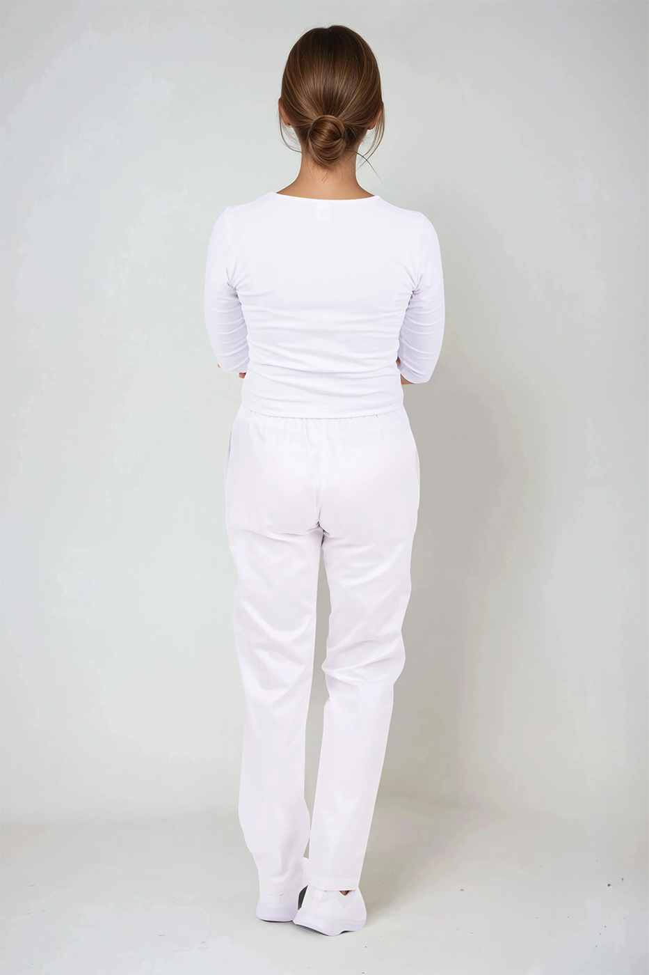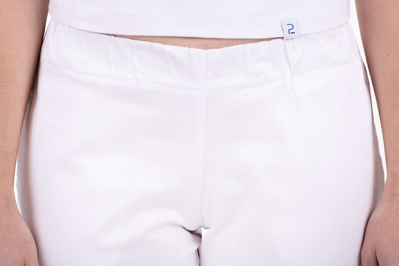 Dámské kalhoty do gumy Royal Satin jsou ideální nejen do nemocničního nebo laboratorního prostředí, ale i do kanceláře, lékárny, kosmetického salonu nebo na běžné nošení. Bílá barva působí profesionálně, upraveně a čistě – ideální tam, kde je hygiena prioritou.