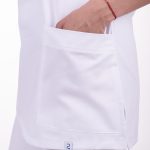 Dámské pracovní haleny Julia-B nejsou jen hezké na pohled – jsou také praktické. Disponují dvěma velkými spodními kapsami, do kterých se vejde vše potřebné od rukavic, roušky až po telefon či poznámkový blok. Náprsní kapsa nabízí další úložný prostor, který ocení každá žena při každodenní práci.