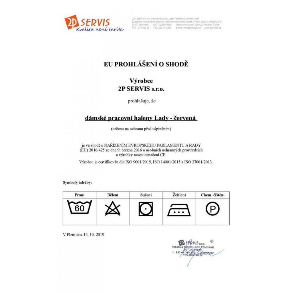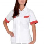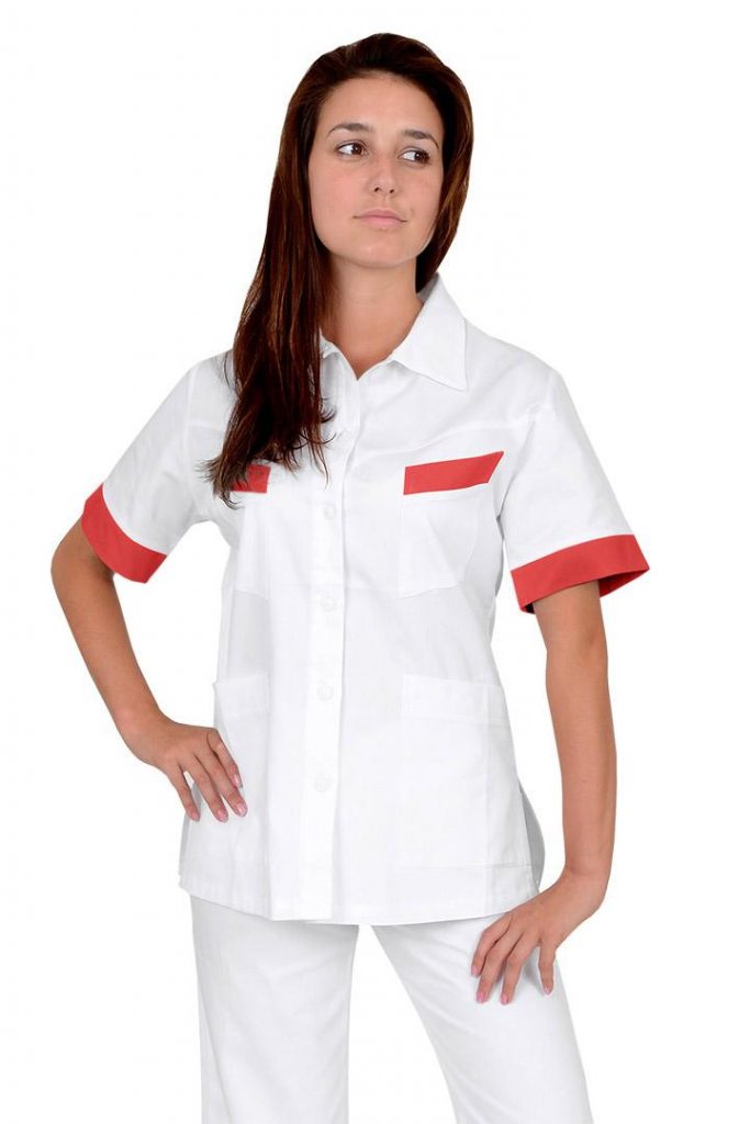 Lady – dámské pracovní haleny jsou celopropínací, mírně vypasované a zdobené barevnými lemy na horních kapsách a rukávech. Materiál: 100% bavlna, sanfor., merc. 175g/m2. Praní: na 60°C.