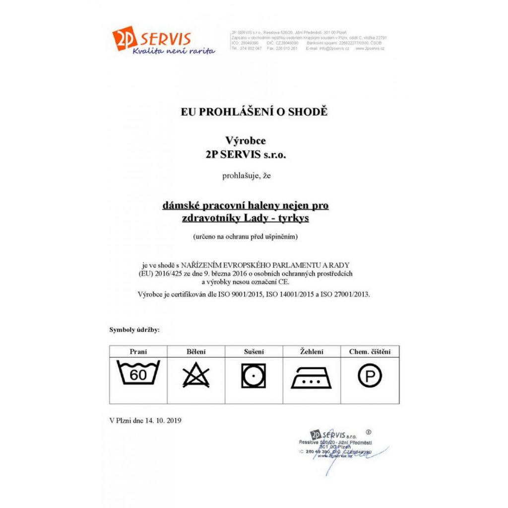 Lady jsou profesní haleny nejen pro zdravotníky, ale i zaměstnance v laboratořích či gastro provozech. Díky mírně vypasovanému střihu a celopropínacímu zapínání na knoflíky se jedná o pohodlný pracovní oděv. Materiál: 100% bavlna, sanfor., merc. 175g/m2. Praní: na 60°C.