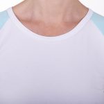Dámské triko Laguna s lehce tvarovaným střihem a barevnými doplňky šijeme z velmi příjemného, prodyšného a zdravotně nezávadného materiálu.