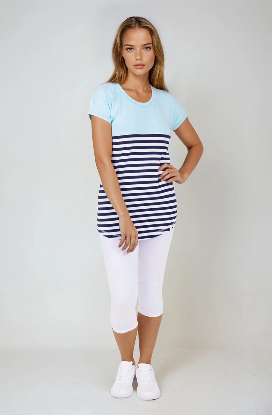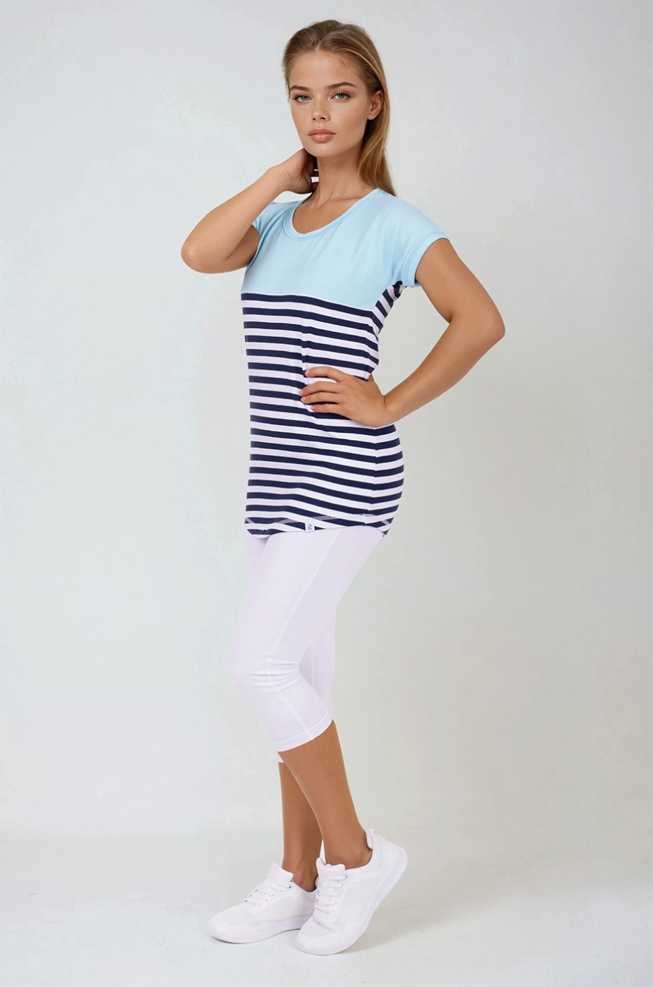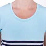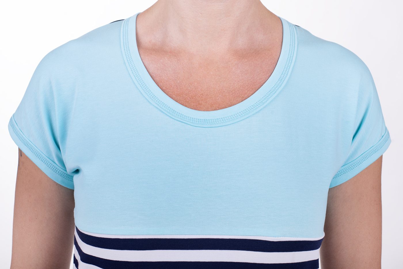 Dámské triko Modrava má lehce vypasovaný střih, krátké rukávy, prodloužený zadní díl, kulatý výstřih, materiál je dobře prodyšný a na dotek velmi příjemný.
