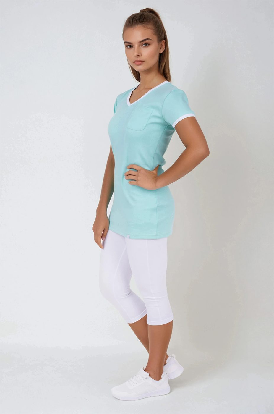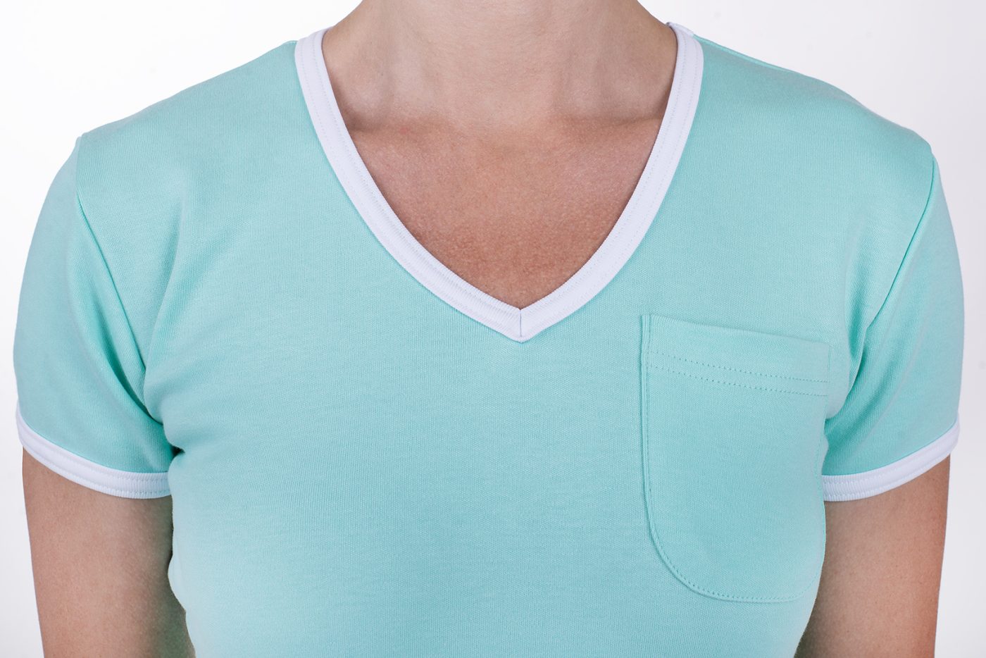 Dámské triko Vito Duo-A s lehce tvarovaným střihem a barevnými doplňky šijeme z velmi příjemného a zdravotně nezávadného materiálu. P