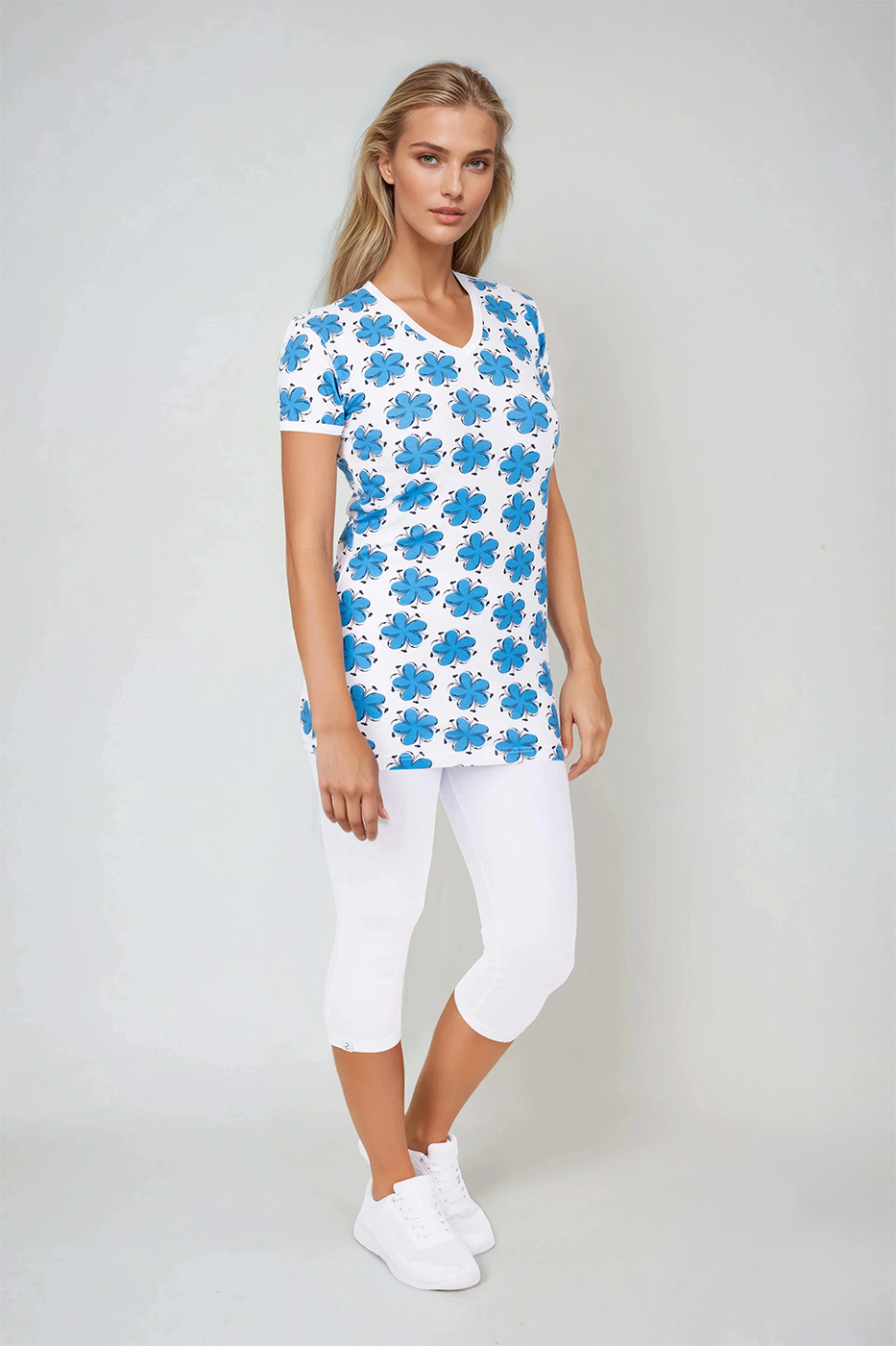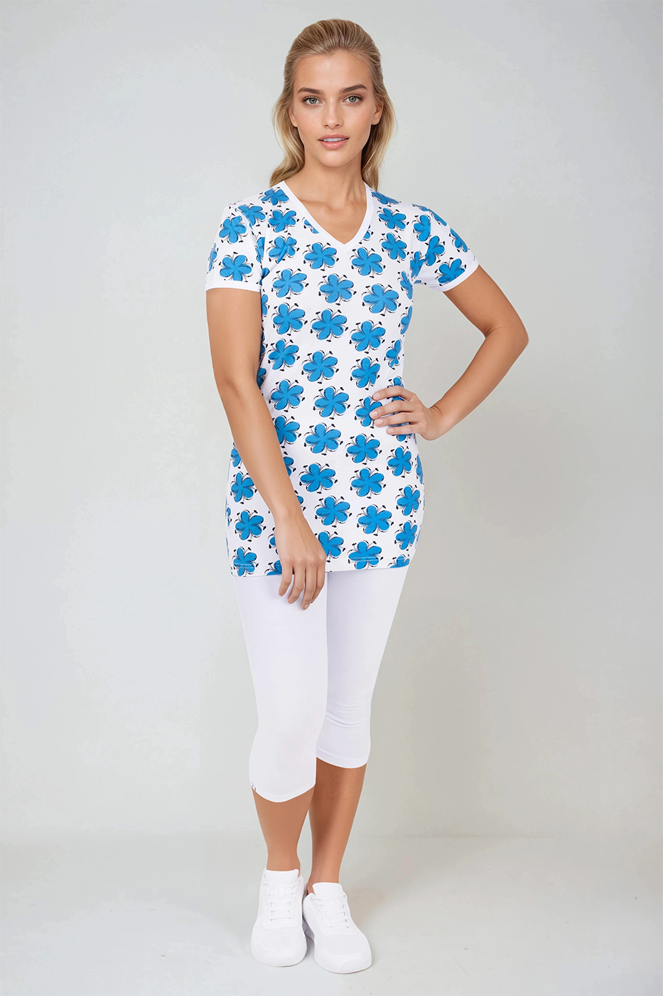 Délka trička je zvolena tak, aby působilo upraveně a zůstávalo na svém místě po celý den. Tričko se nevyhrnuje, netlačí a zachovává si tvar i při delším nošení. To ocení ženy, které potřebují spolehlivý a pohodlný oděv na každý den.