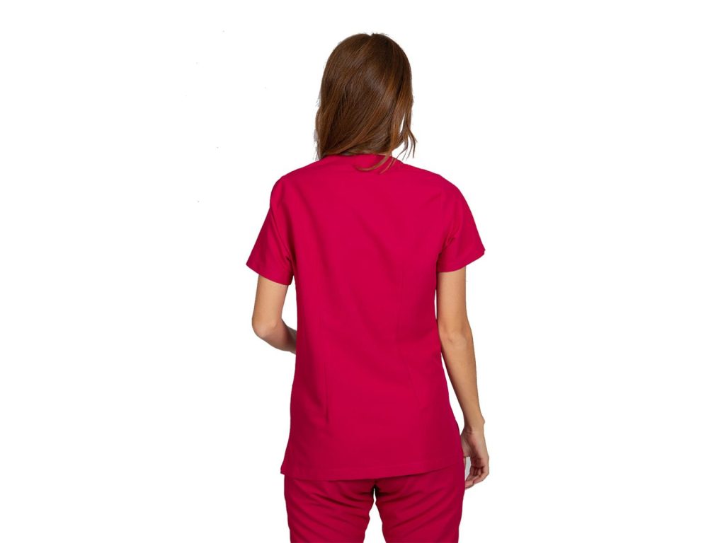 Tunika dámská pracovní Sonia v malinové barvě je moderní a funkční oděv nejen pro profesionály. Halena má krátké rukávy, výstřih do V, skryté zapínání na druky a 2 přední kapsy. Haleny jsou dobře prodyšné, odolné vůči postříkání bělidly, jsou rychleschnoucí bez nutnosti žehlení a odpuzují vlasy i srst domácích mazlíčků. Materiál: 100% PES mikrovlákno 148g/m2 s antibakteriální úpravou. Praní: na 90°C.