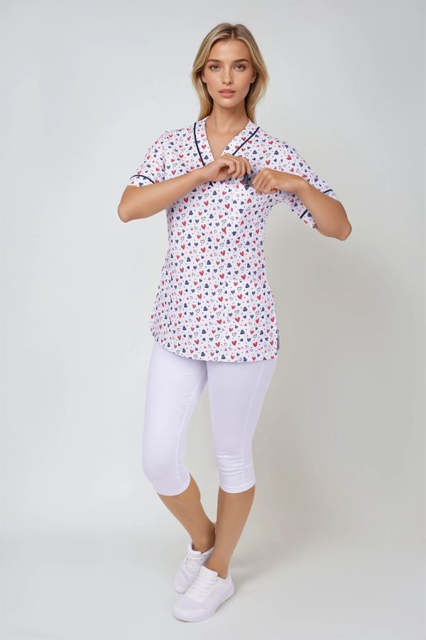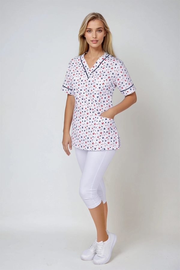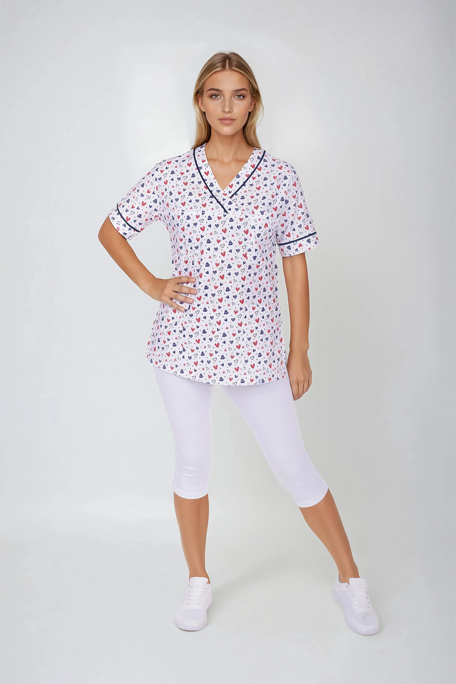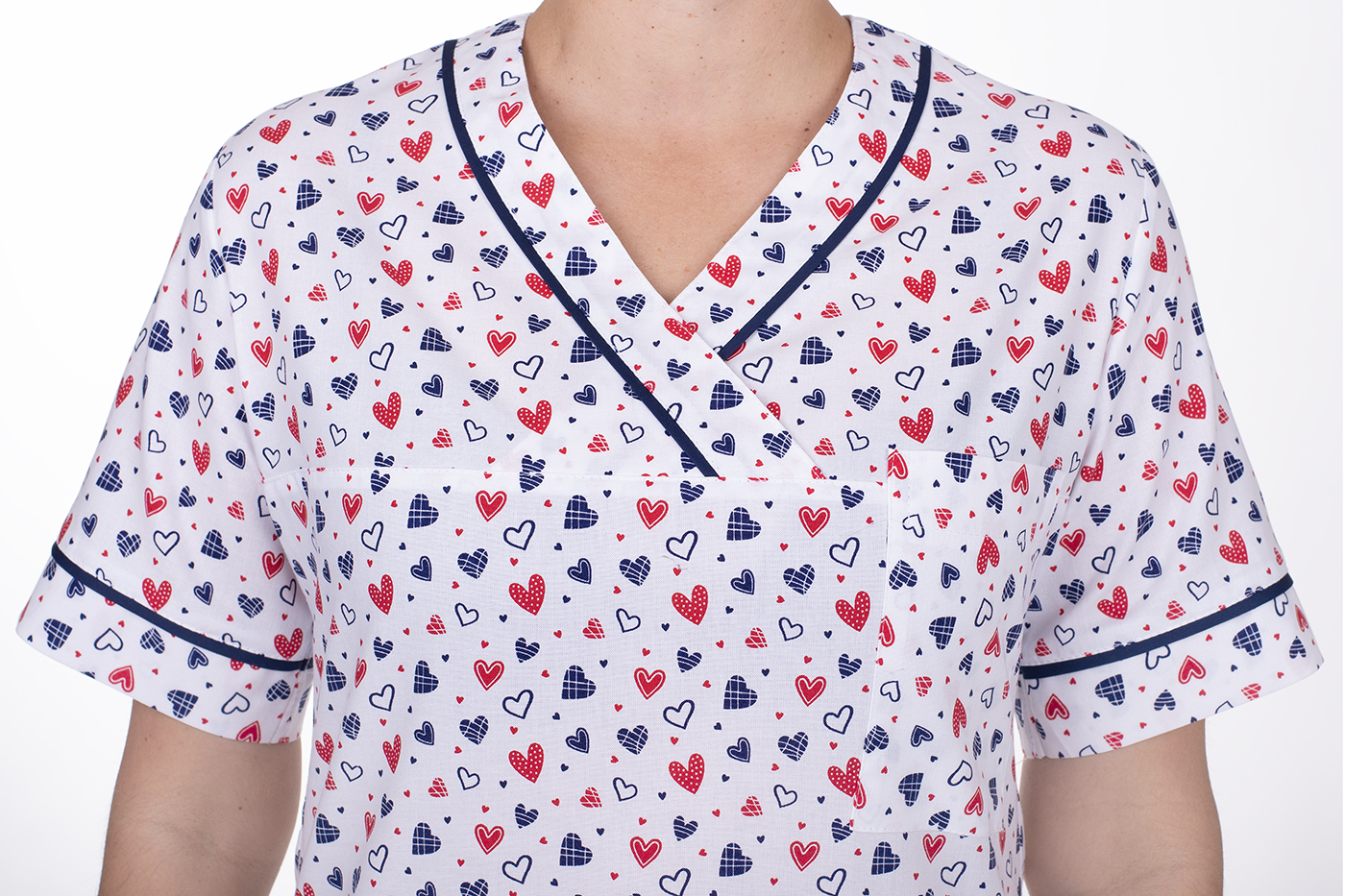 Zdravotnická pracovní halena Julia-B srdíčka dámská je pro vaše pohodlí vyrobena z vysrážené 100% bavlny kepr 175g/m2.- pohodlný mírně vypasovaný střih haleny