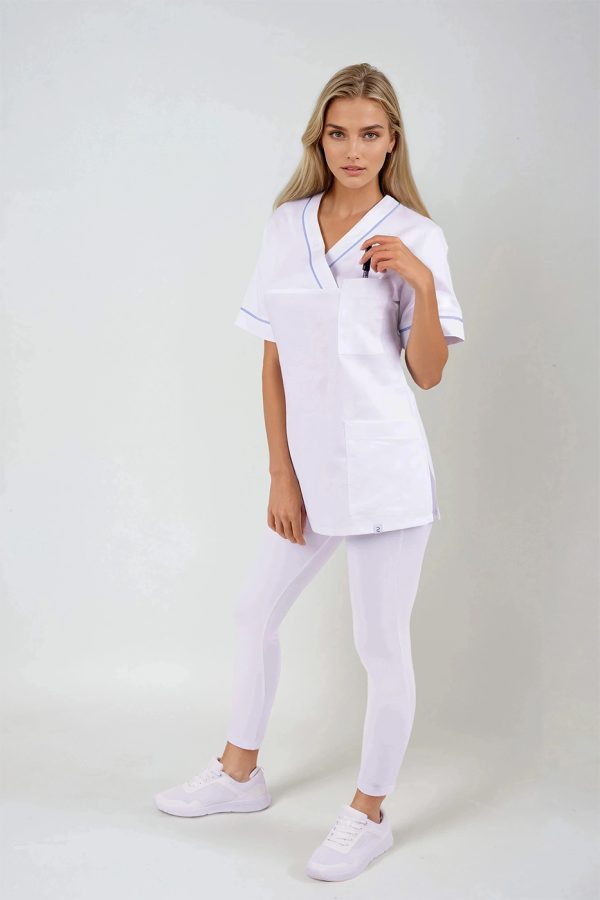 Jedinečný výstřih do V dodává halence jemně elegantní vzhled, který vás odliší od klasických „unisex“ oděvů. Navíc decentní barevné zdobení výstřihu a rukávů dodává každému modelu nádech osobitosti, aniž by narušovalo předepsaný pracovní dresscode.