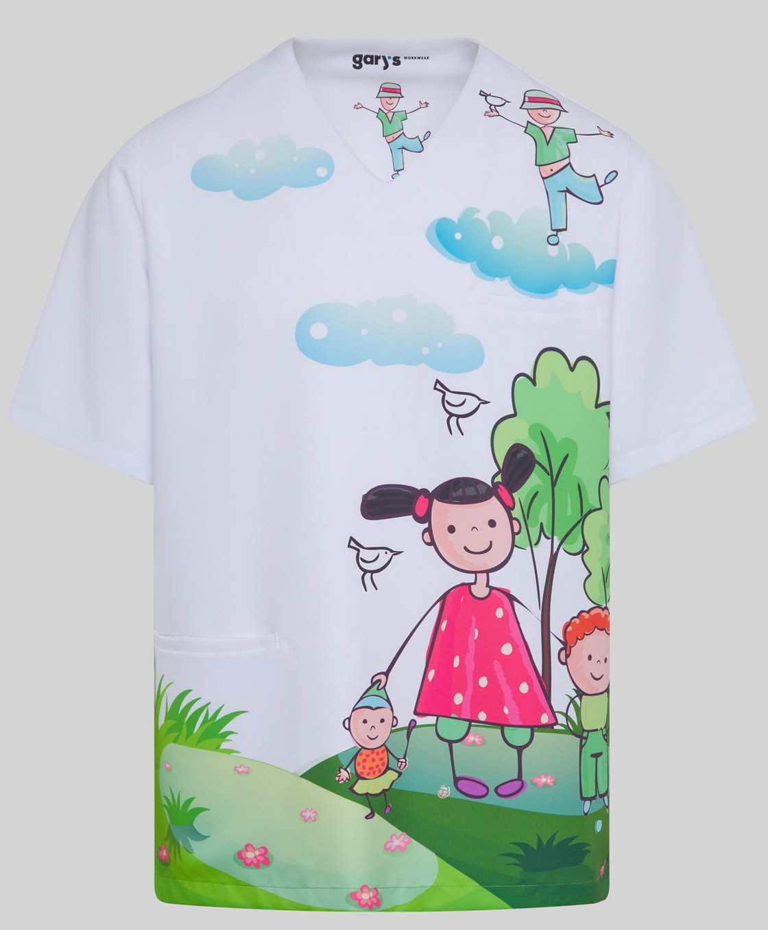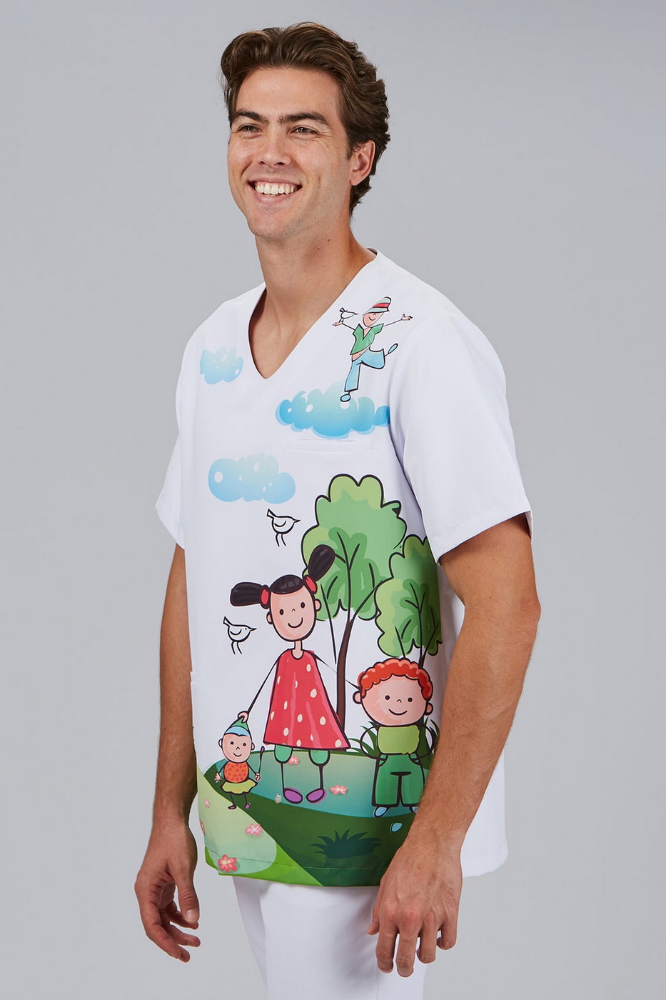 Model Mika Peques je navržen tak, aby podporoval komfort při celodenním nošení a zároveň zaujal hravým motivem. Barevný potisk působí optimisticky a pomáhá odbourávat napětí například u dětských pacientů nebo klientů v sociálních službách. Haleny s potiskem tak nejsou jen pracovním oblečením – stávají se součástí přátelského pracovního prostředí.