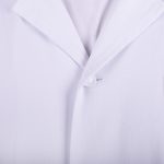 Střih pláště je rovný, lehce projmutý, s důrazem na pohodlí i praktičnost. Klasické zapínání na knoflíky je snadné a rychlé, takže se snadno obléká i svléká. Nechybí praktické kapsy – dvě spodní na drobnosti a jedna náprsní na tužku, telefon nebo zápisník. Dlouhé rukávy a decentní límeček podtrhují profesionální vzhled, který je vhodný jak do laboratoře, tak i na vizitu nebo do lékárenského provozu.
