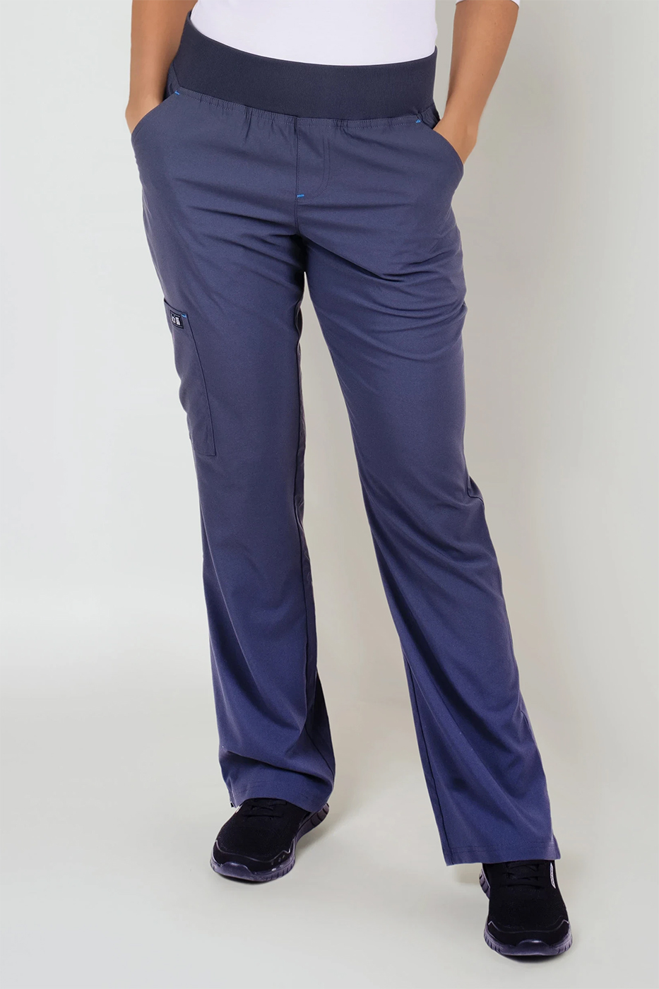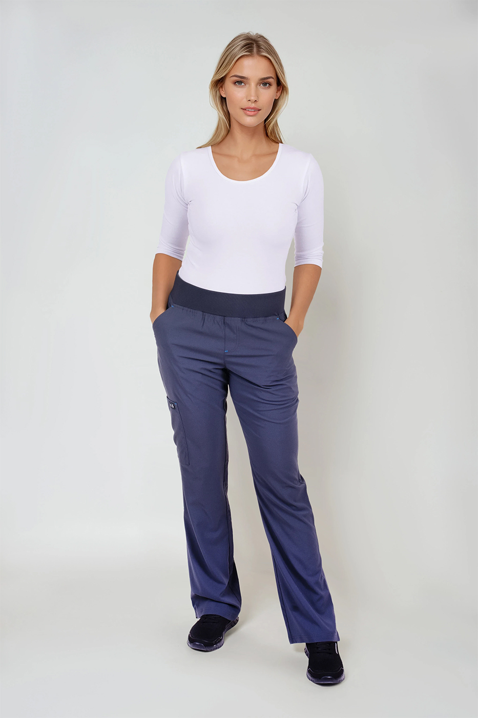 Dámské lékařské kalhoty Laurie v tmavě šedé barvě, super pohodlné, středně vysoké s žebrovým pasem, lehká tkanina dobře odváděcí vlhkost, 3 přední kapsy včetně kapsičky na mince, boční kapsa a 2 zadní kapsy. Pokud preferujete mít kalhoty více upnuté, zvažte volbu menší velikosti. Materiál: strečové mikrovlákno 95% polyester + 5% spandex. Žebrový pás: 95% polyester + 5% spandex. Praní: na 30°C.
