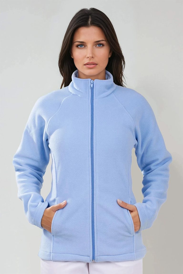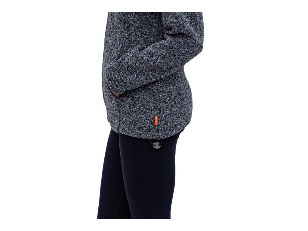Mikina dámská K1 s dlouhým rukávem a celopropínacím zapínáním na zdrhovadlo, vpředu 2 kapsy. Svetrovina je příjemný a měkký materiál. Z rubové strany má krátce střižený počesaný chloupek podobný microfleecu, lícová strana je pletená hladce, materiál je lehce pružný.