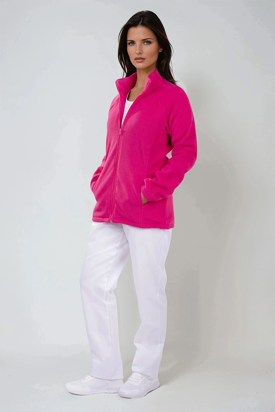 Každá žena má ráda hřejivý pocit v každém ročním období. Nahoďte na sebe tuto skvostnou mikinu a pak vám bude úplně jedno, že se venku všichni čerti žení. Fleecová mikina se ideálně hodí na všechny pohybové aktivity, na procházky, ale také vás výborně zahřeje i v pracovním procesu. Kam si s komfortní mikinou vyrazíte vy? Kvalitně střižená mikina vás okouzlí svou všestranností a mimořádnou tepelnou termo-izolací. V přední části jsou dvě praktické kapsy, takže vám nic chybět nebude. Použitý materiál je stoprocentní polyester s protižmolkovou úpravou, čímž si mikina zachovává stále pěkný vzhled i po častém vyprání. Pestrobarevná škála atraktivních a moderních barev je opravdu široká a z velikostí od XS až po 3XL si vybere jistě každá žena.
