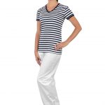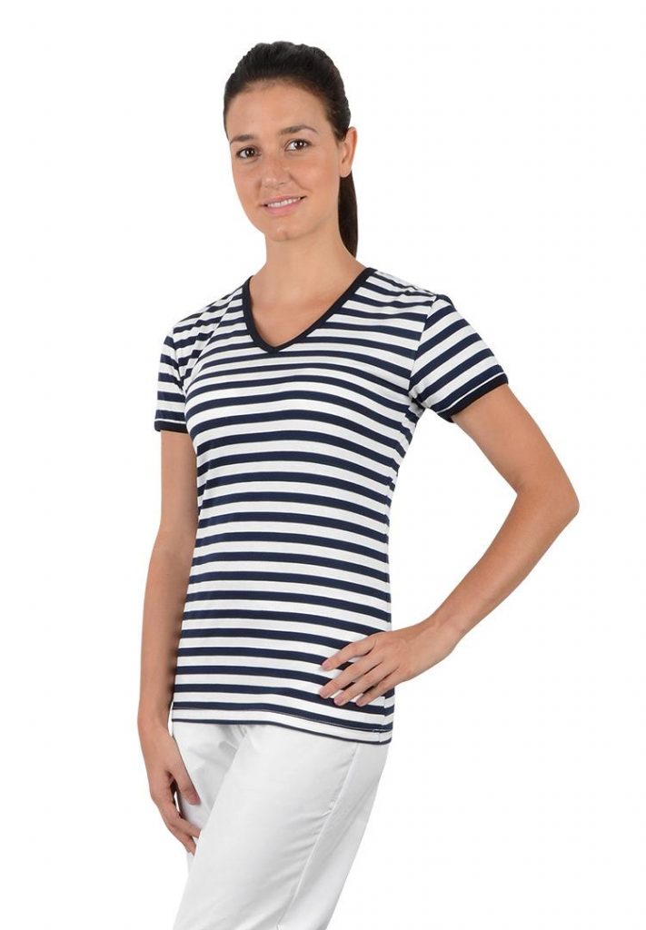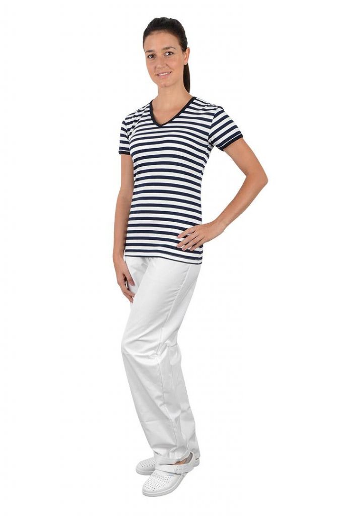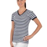 Námořnické triko dámské Marina z velmi příjemného a zdravotně nezávadného materiálu s vytkávanými proužky má lehce tvarovaný střih a výstřih do V. Materiál: 100% bavlna, 180g/m2. Praní: na 40°C.