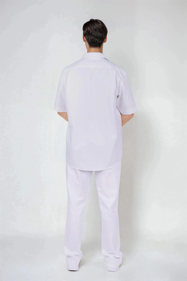Pánská bílá košile Lucas má rovný střih, který poskytuje volnost pohybu a pohodlí po celý den. Dvoudílný límec dodává košili klasický vzhled, zatímco krátké rukávy jsou ideální volbou pro teplejší dny nebo pro práci v prostředí s vyšší teplotou. Zadní část je členěna dvojitým sedlem, což nejen zlepšuje vzhled, ale i zvyšuje komfort nošení.