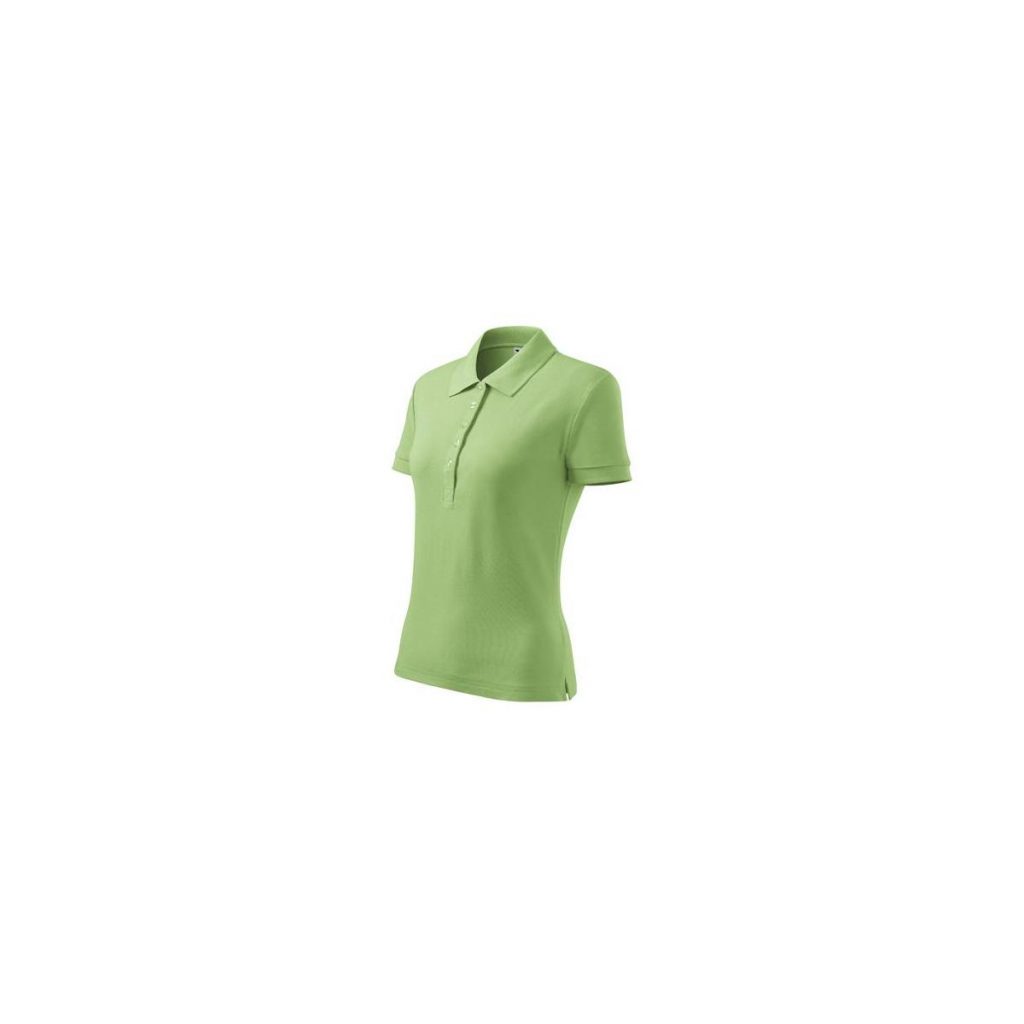 Polokošile dámská trávově zelená pique má elegantní, projmutý střih, prodlouženou úzkou légu s 5 knoflíčky, límeček i lemy rukávů jsou ze žebrové pleteniny, tkaná etiketa. Praní na 40°C. Materiál: 100% bavlna, 170g/m2.
