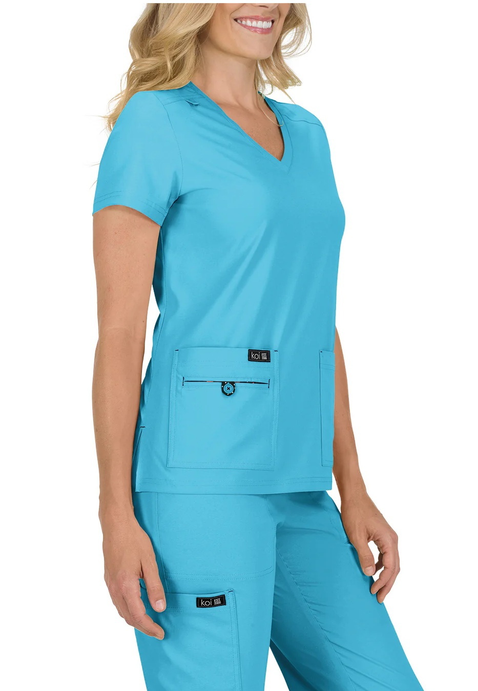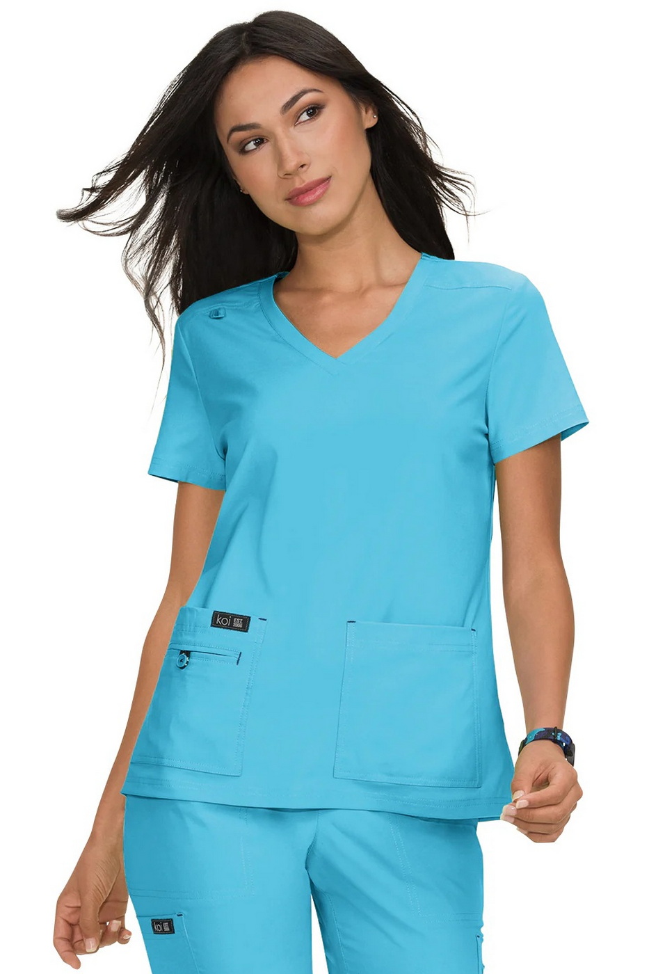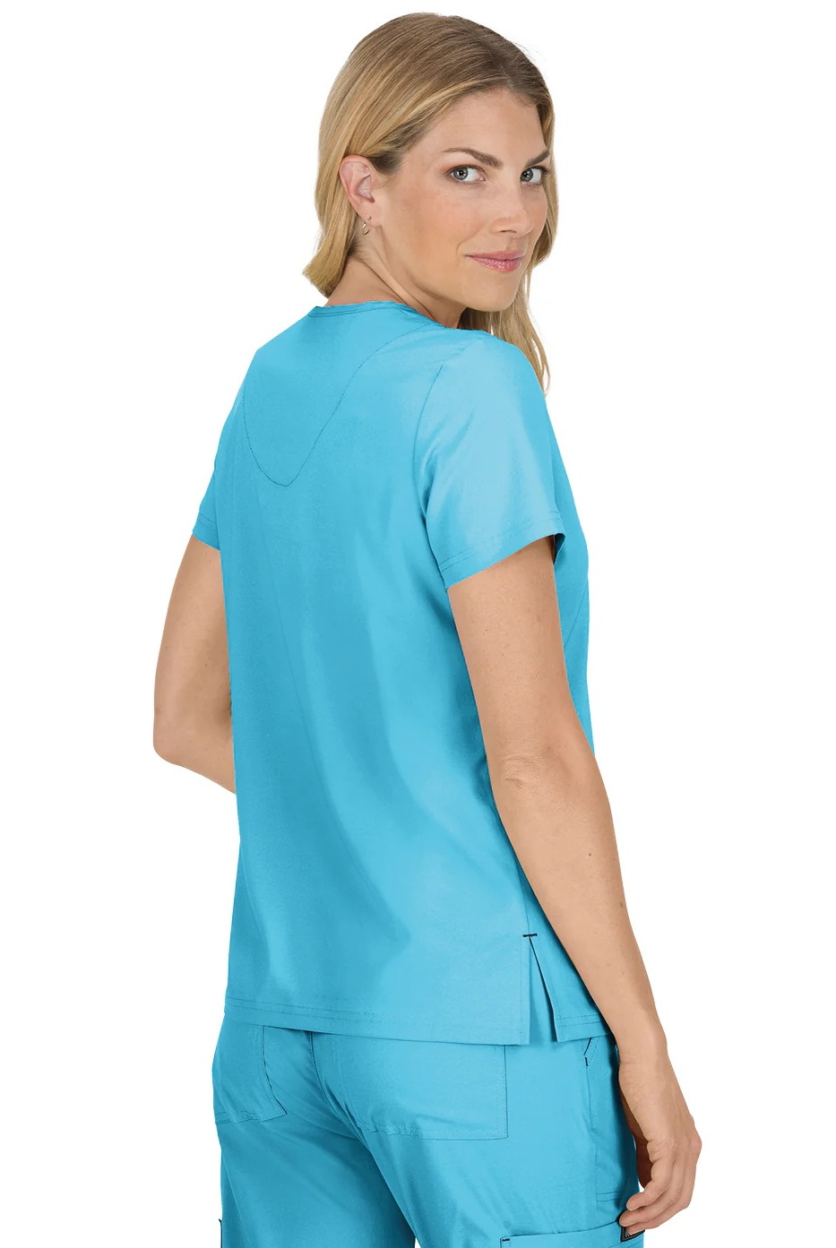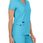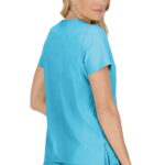 Pracovní haleny s kapsami Becca tyrkys, s klasickým výstřihem do V, lehká tkanina odvádějící vlhkost, 4 kapsy včetně skryté kapsy na mobil s potiskem podšívky, pružná smyčka pro uchycení jmenovky, kontrastní potisk na spodní straně lemu krku, lehký strečový materiál, který není nutné žehlit, vícestehové prošívání ve švech pro delší životnost oděvu. Materiál: 95% polyester + 5% spandex. Praní: na 30°C.