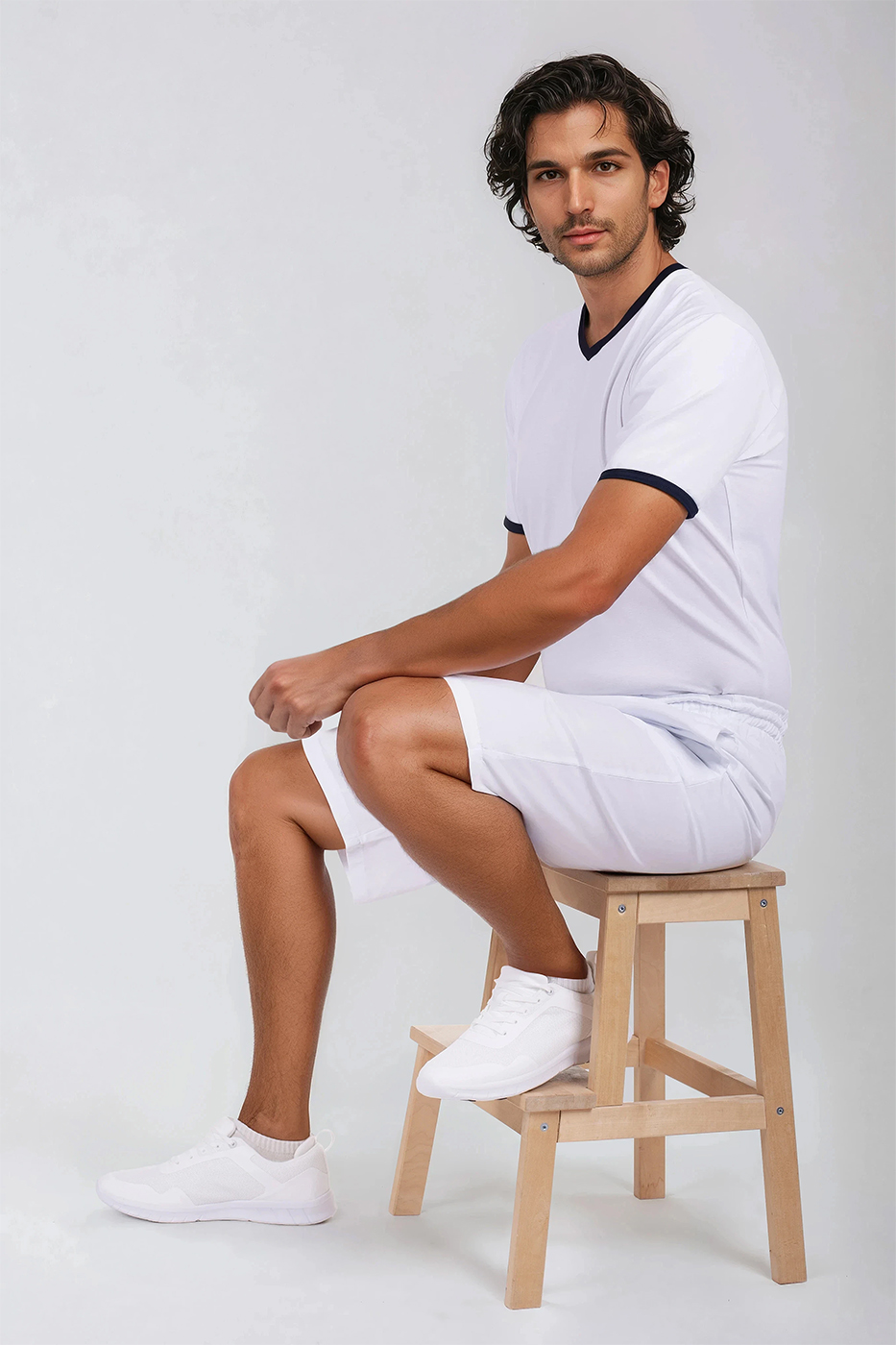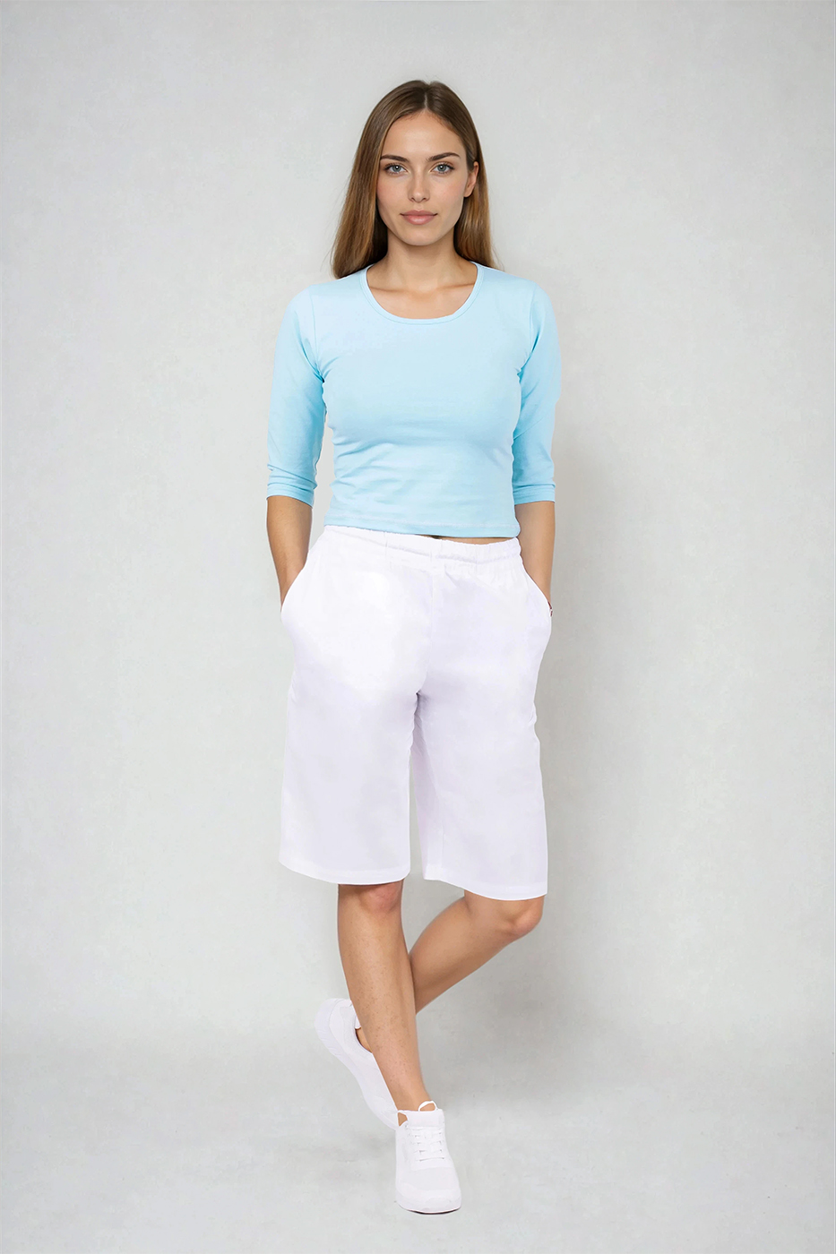 Pracovní kraťasy Uni Kraťa v délce nad kolena mají v pase 2 vyměnitelné gumy a 1 šňůrku, 2 švové kapsy.- 100% bavlna, přátelský materiál k pokožce