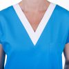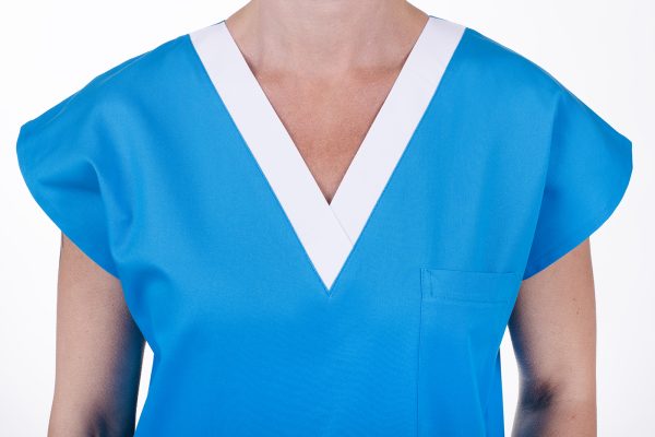 Další velkou výhodou je výstřih do V, díky kterému je převlékání rychlé a pohodlné. Jednoduché a rychlé oblékání přes hlavu – vyměnit oděv po směně je otázkou pár vteřin. A pokud si v práci potřebujete odložit drobnosti, jsou tu dvě prostorné přední kapsy a jedna menší náprsní, které pojmou telefon, poznámkový blok, propisku, rukavice nebo jiné pomůcky.