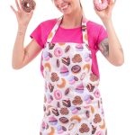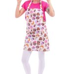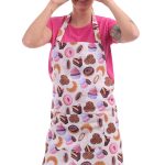 Stylová zástěra se vzorem muffinů s laclem a praktickým zavazováním vzadu. Materiál: 100% bavlna, 150g/m2. Rozměry: 65cm šířka, 68cm délka (výška).