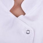 Sesterská halena je vybavena celopropínacím zapínáním na 5 druků (cvoků). Tato volba je nejen praktická pro rychlé oblékání a svlékání, ale také estetická – druky působí decentně a elegantně.