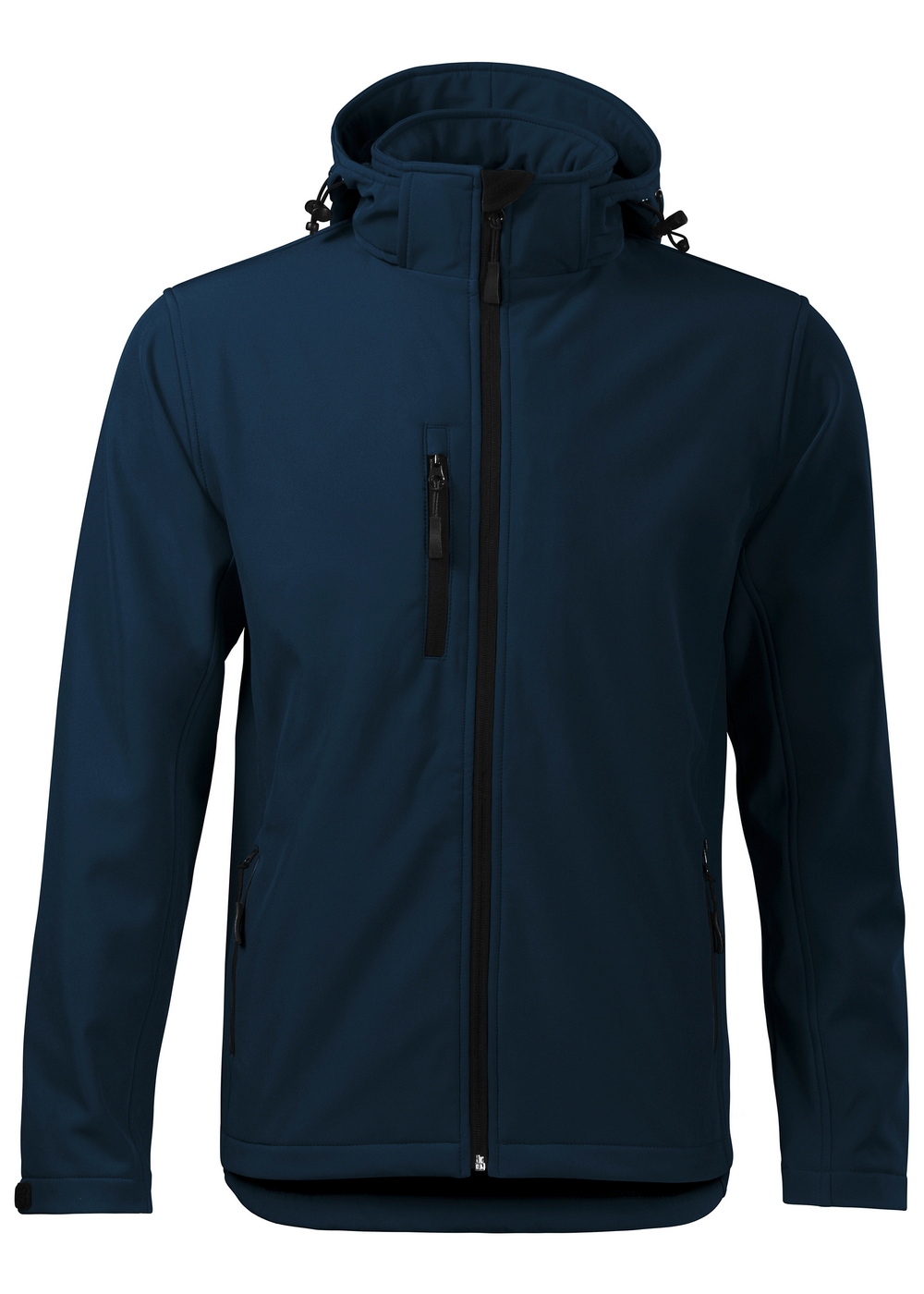 Softshellová bunda pánská námořní modrá má odnímatelnou kupuci, celopropínací zip s krytkou brady, lemy rukávů lze nastavit suchým zipem, dolní lem bundy stáhnete elastickou šňůrkou, vnitřní strana zateplena fleece s antipilingovou úpravou. Materiál: 94% polyester, 6% elastan 300g/m2 – 3vrstvý softshell. Prodyšná membrána: 100% polyester – micro fleece. Voděodolnost: 14000mm. Prodyšnost: 2000g/m2/24h. Praní: na 30°C.