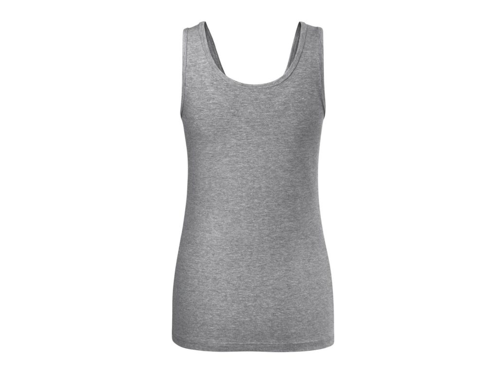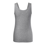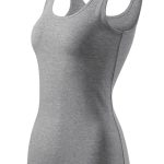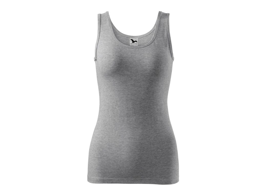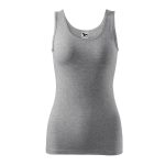 Dámské tílko Anna v tm. šedé melírové barvě má přiléhavý střih s bočními švy, strečový materiál udržující stálost tvaru, hlubší kulatý výstřih, průkrčník a průramky lemovány vrchovým materiálem, širší ramínka a saténová etiketa. Materiál: 95% bavlna 5% elastan 180g/m2. Praní: na 30°C.- širší ramínka
