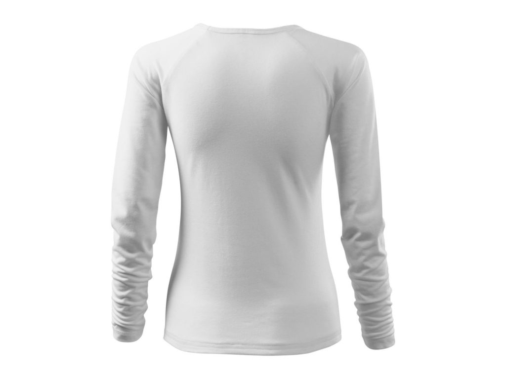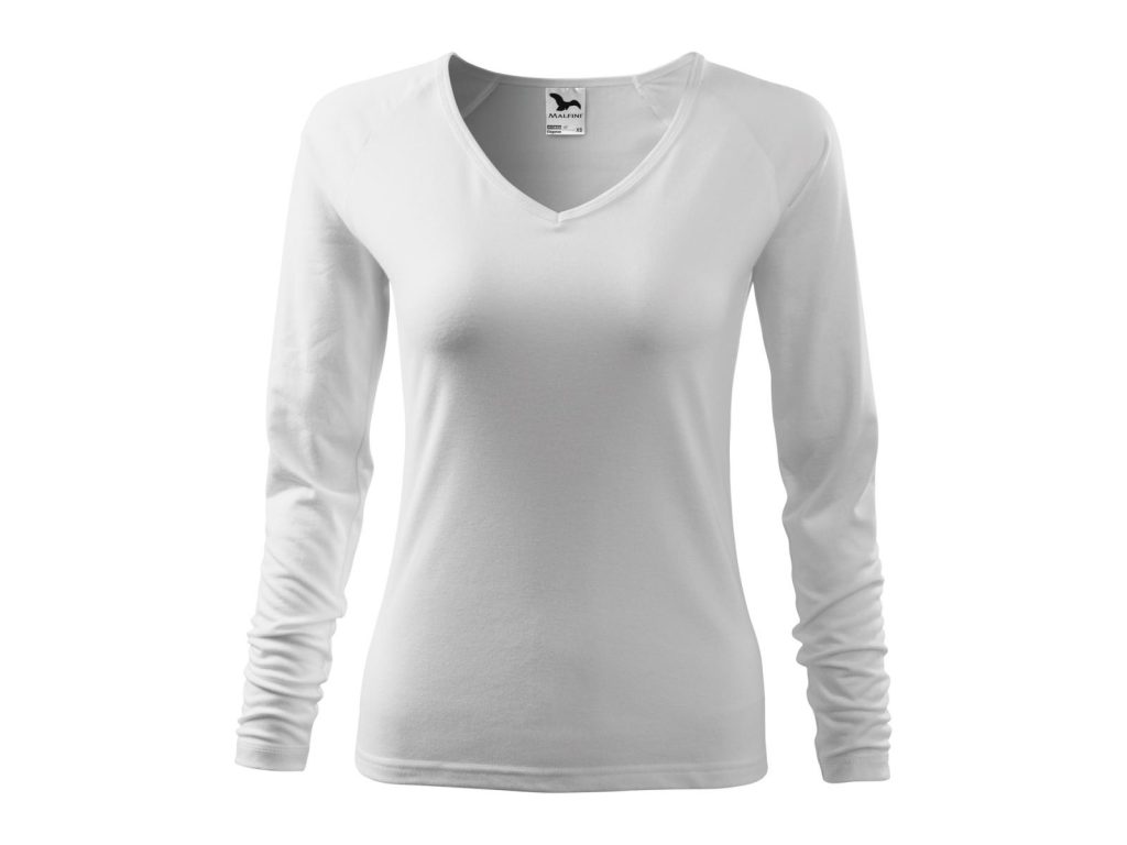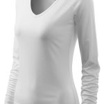 Dámské triko bílé s výstřihem do V a dlouhými raglánovými rukávy, přiléhavý střih s bočními švy, kvalitní strečový materiál udržující stálost tvaru, průkrčník je lemován vrchovým materiálem. Materiál: 95% bavlna 5% elastan 180g/m2. Praní: na 30°C.