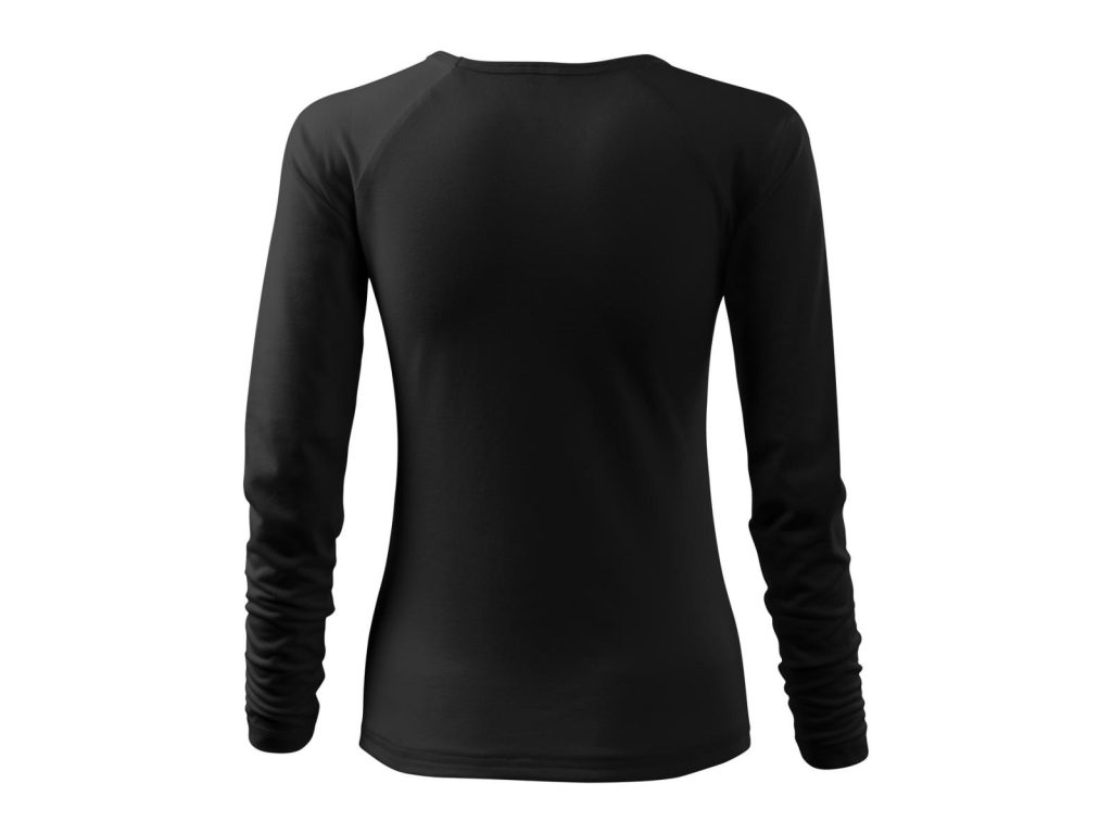 Dámské triko černé s výstřihem do V a dlouhými raglánovými rukávy, přiléhavý střih s bočními švy, kvalitní strečový materiál udržující stálost tvaru, průkrčník je lemován vrchovým materiálem. Materiál: 95% bavlna 5% elastan 180g/m2. Praní: na 30°C.