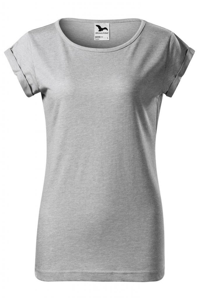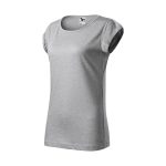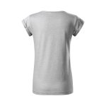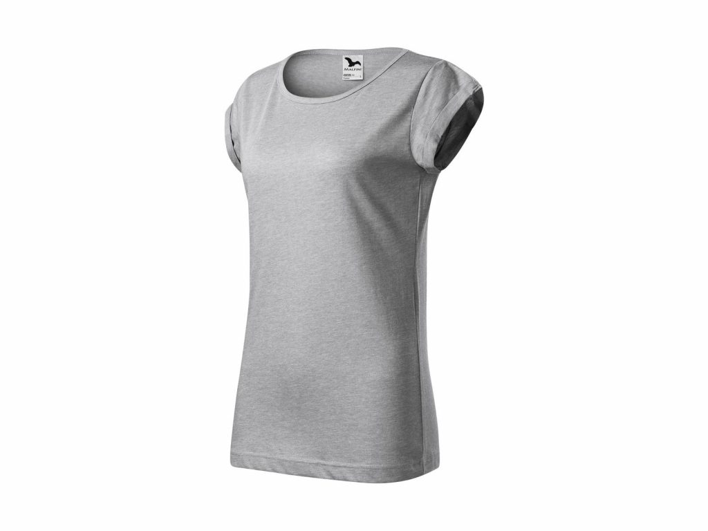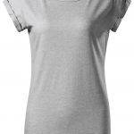 Dámské triko s krátkým rukávem 164 v stříbrné melírové barvě má krátké ohrnuté rukávy zachycené ve 4 bodech šitím, volný střih s bočními švy, průkrčník je lemován vrchovým materiálem, ramenní švy zpevněné páskou, saténová etiketa. Materiál: 35% bavlna, 65% polyester, 160g/m2. Praní: na 40°C. Balení: 1 kus v PE sáčku.