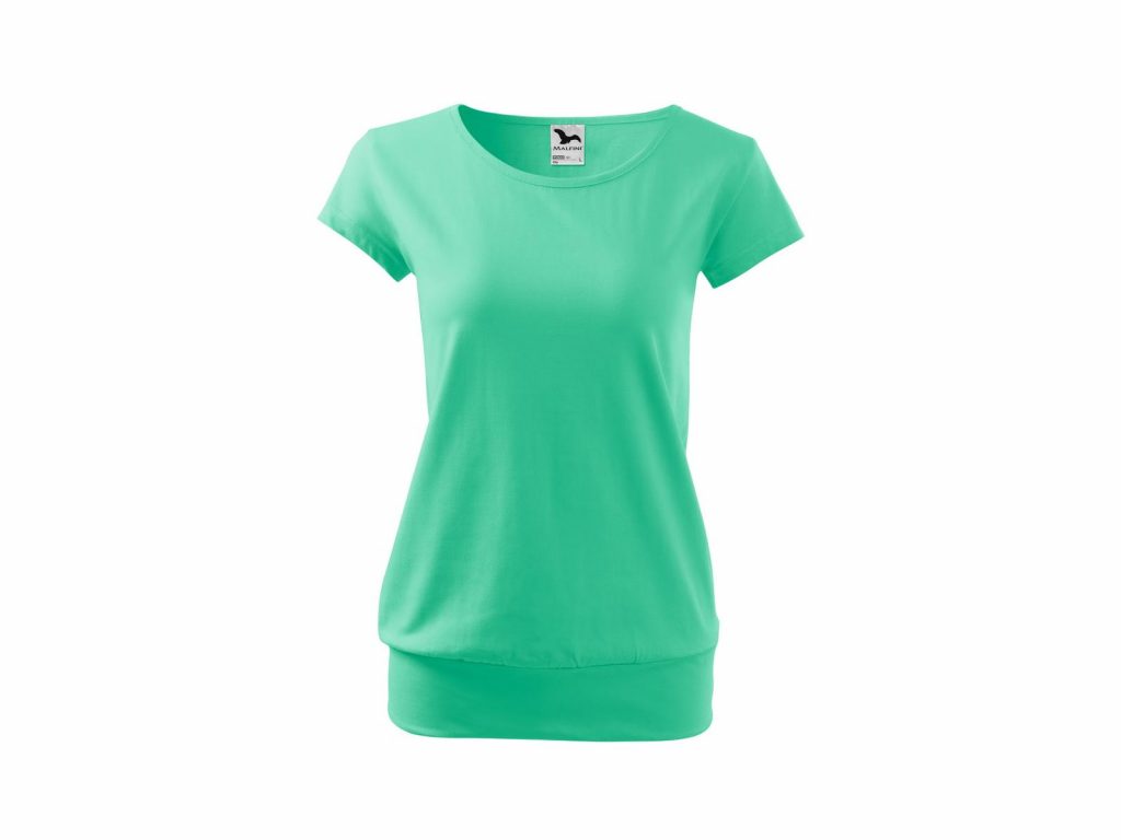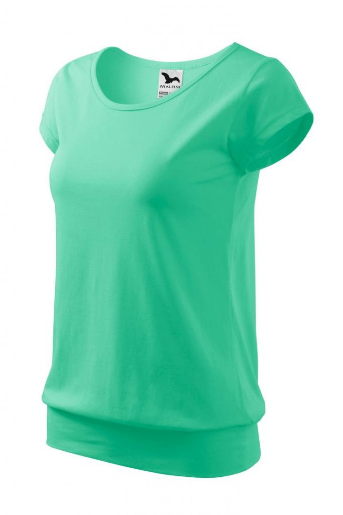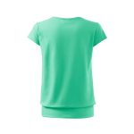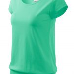 Tričko dámské mentolové TR-08 s širokým lemem v pase, s krátkými rukávy a volným střihem je opatřeno silikonovou úpravou, dík které je vhodné pro digitální potisk, výšivku, přímý sítotisk a transférový potisk. Materiál: 100% bavlna 150g/m2. Praní: 40°C.