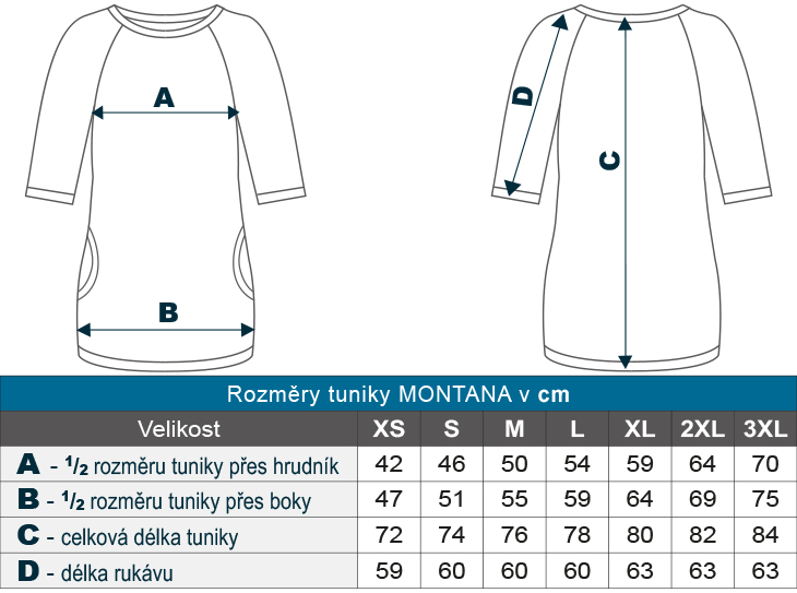 Tunika dámská má rovný střih lichotící postavě, ale zároveň neomezující pohyb. Obléká se přes hlavu, což zaručuje rychlé a pohodlné převlečení bez zbytečných knoflíků nebo zipů.