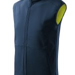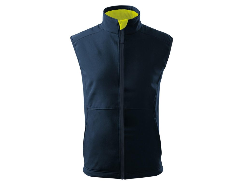 Softshellová pánská vesta nám. modrá z 2vrstvého softshellu má lehce vypasovaný střih, vnitřní fleece s antipilingovou úpravou, kontrastními prvky, celopropínacím spirálovým zipem s krytkou brady, v dolním lemu lze stáhnout elastickou šňůrkou, kapsy na zip skryté v členících švech. Materiál: Softshell – 94% polyester, 6% elastan, Fleece – 100% polyester 280g/m2. Praní: na 30°C.